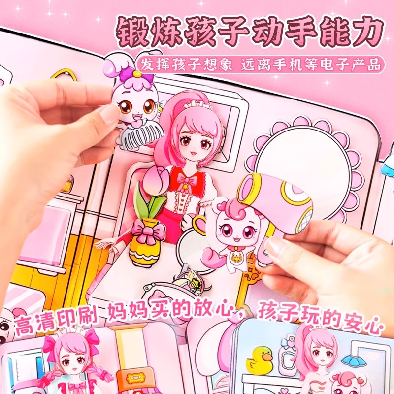 贴纸书儿童玩具 爱心奇妙萌可安静书磁力大号新款 女孩子手工换装