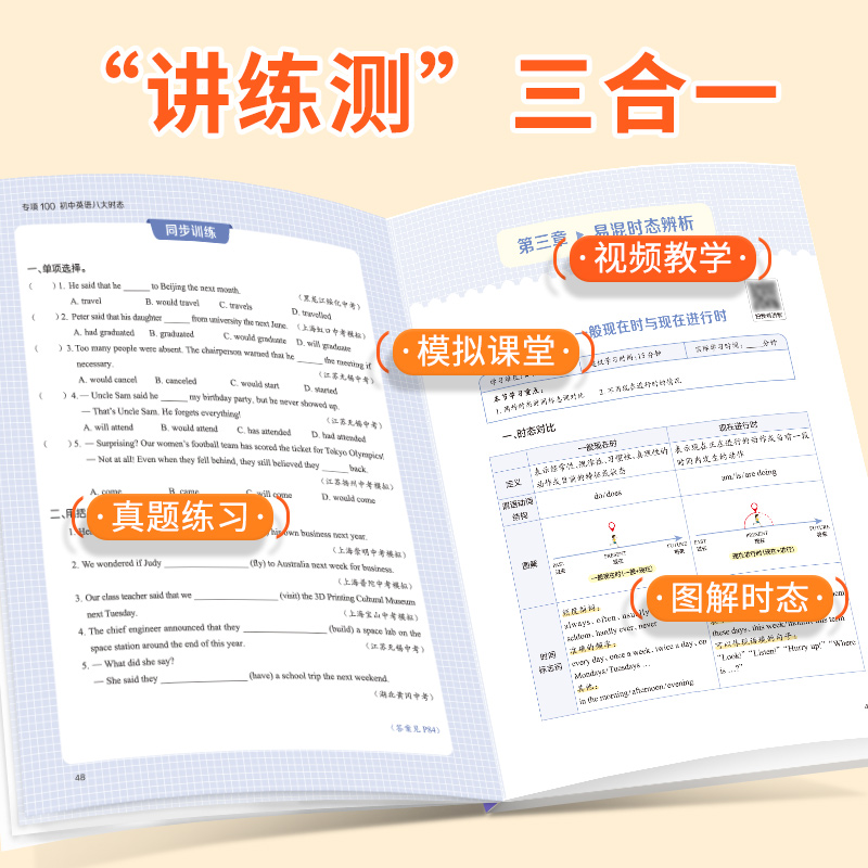 初中英语八大时态专项训练中学语法基础巩固时态知识点归纳必刷题中考英语突破练习本练习册 易蓓