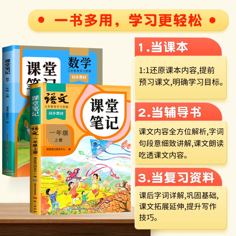 学霸随堂笔记教材全解 辅导资料书小学同步讲解状元 2025年新版 一年级上册课堂笔记语文同步课本全套数学预习斗半匠一上教材人教版