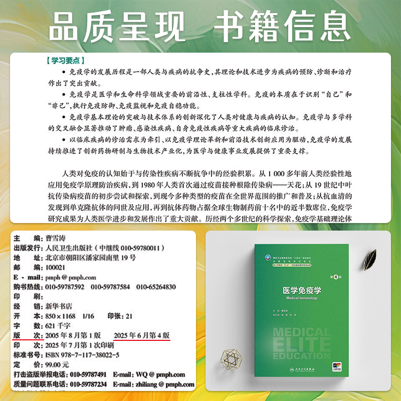医学免疫学第4四版 社 曹雪涛八年制临床医学专业十四五规划教材配增值8年制长学制临床医学教材内外科妇产科研究生教材人民卫生出版