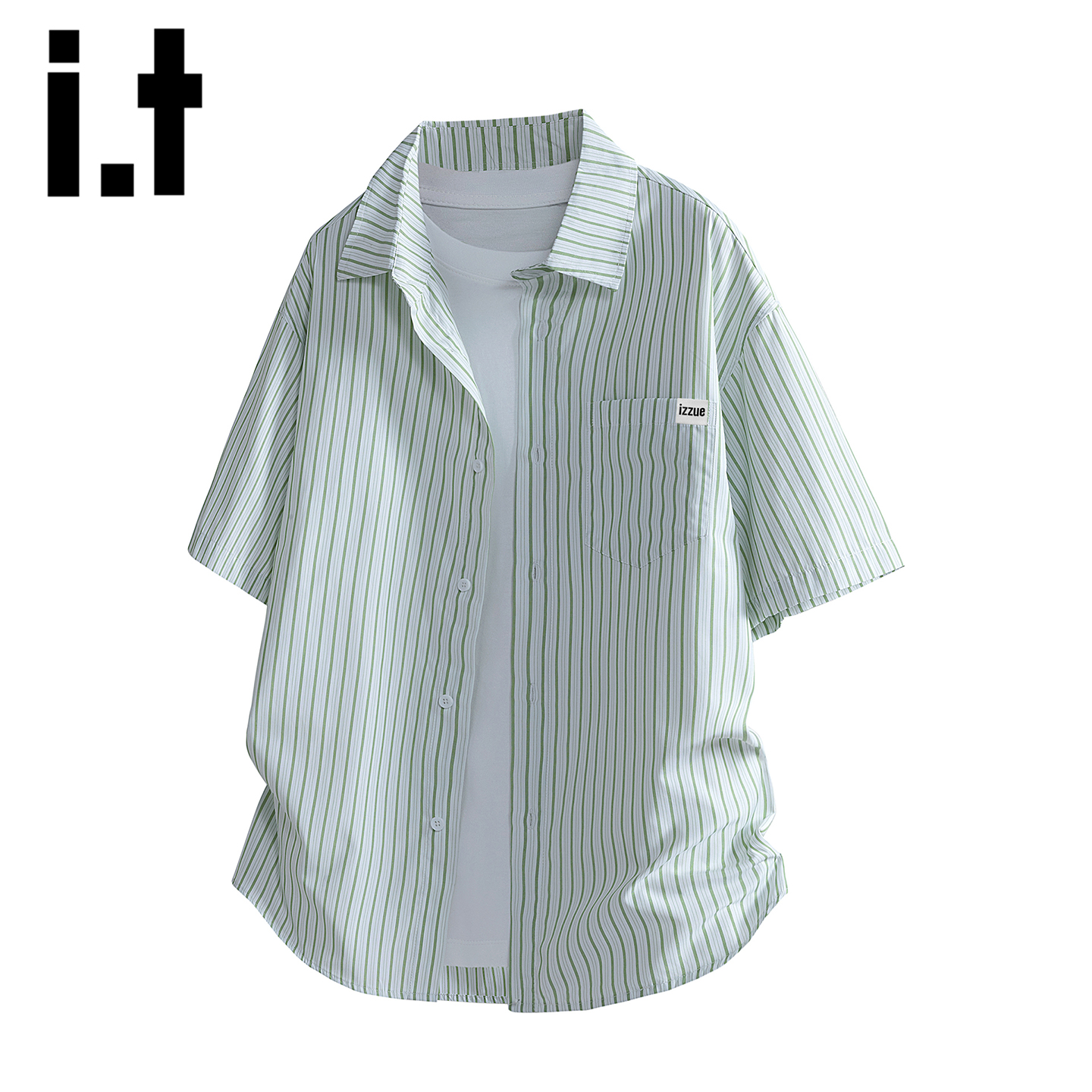 izzue竖条纹衬衫 新款 男士 2025夏季 潮牌宽松百搭休闲衬衣薄 短袖