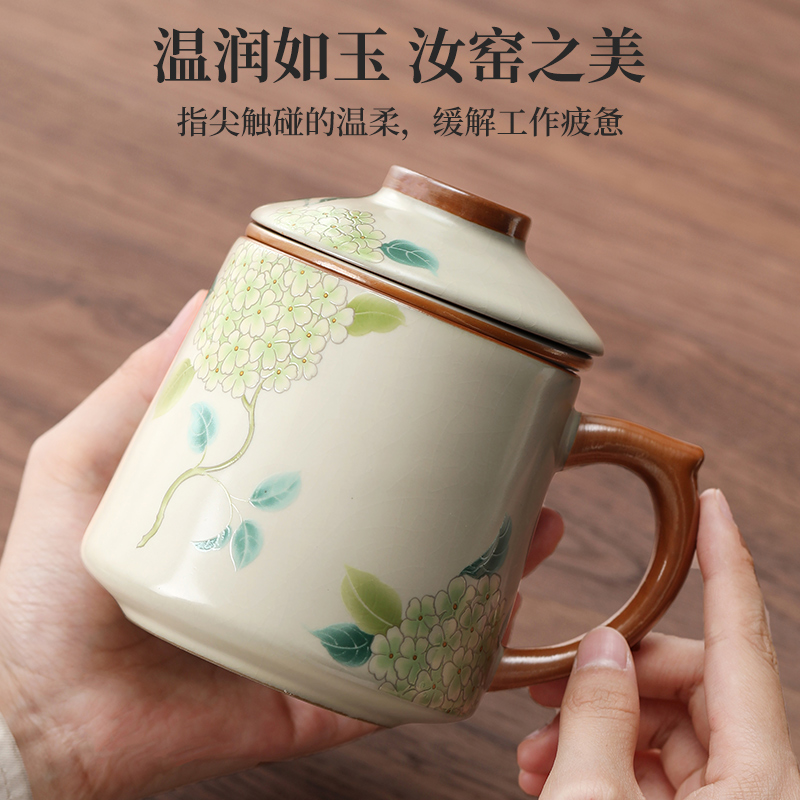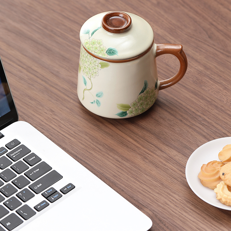 言仓线条小狗泡茶分离杯带滤托陶瓷水杯办公室茶杯生日礼物