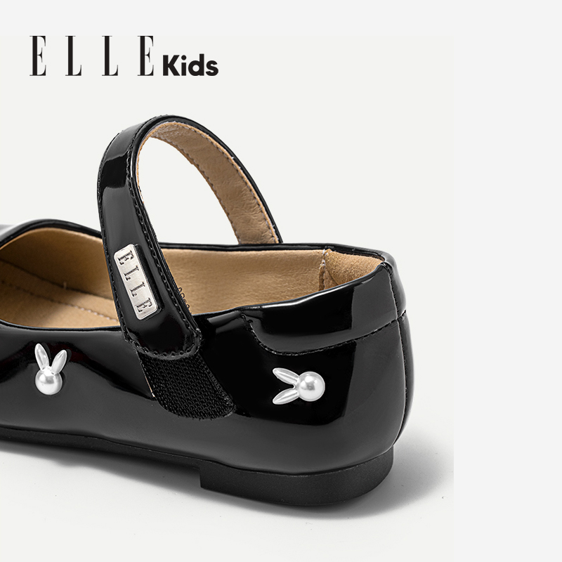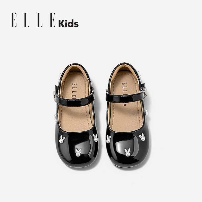 2025秋季 女童小皮鞋 新款 公主单鞋 子 ELLE 黑色软底儿童鞋 KIDS童鞋
