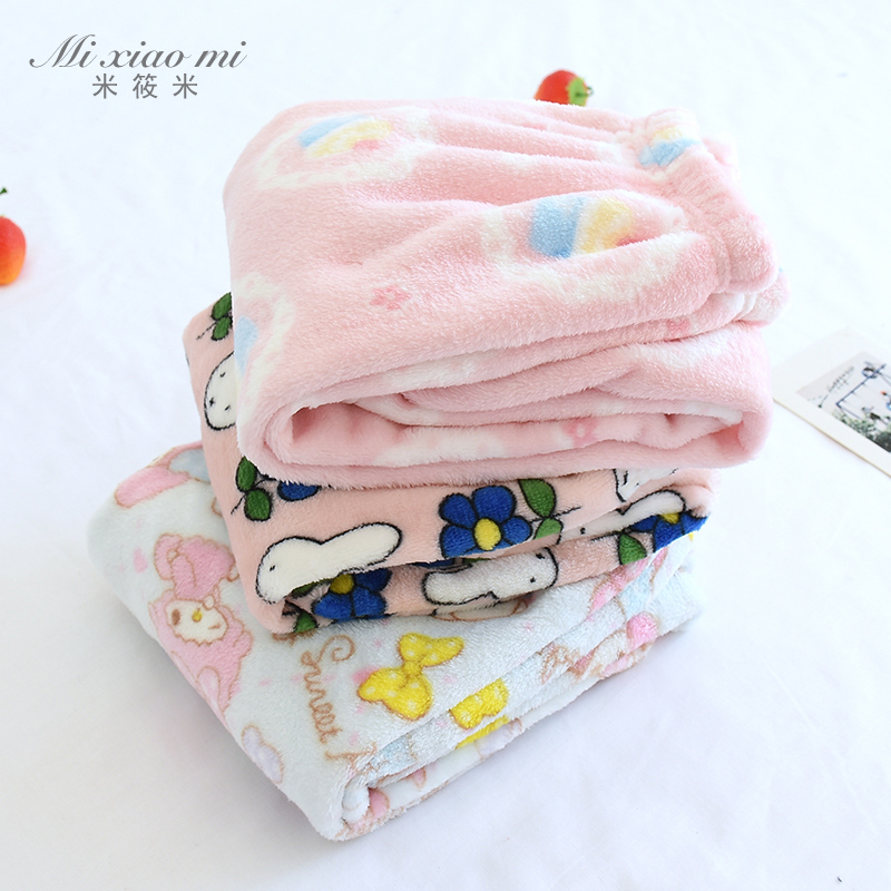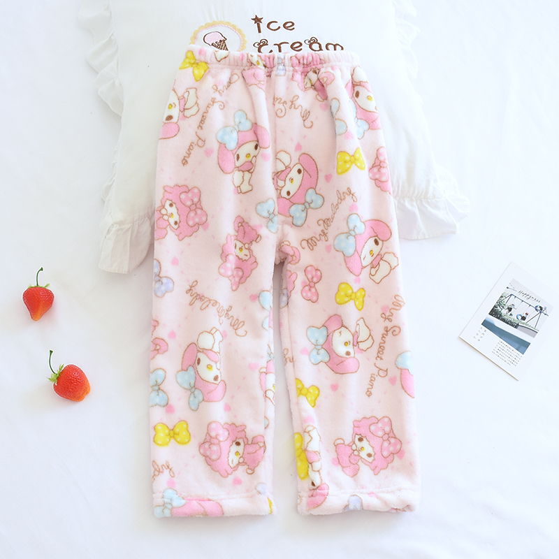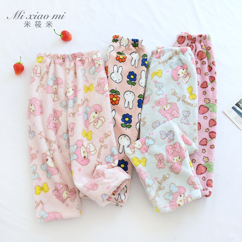 米筱米秋冬珊瑚绒儿童可爱加厚保暖睡裤 女童法兰绒亲子宝宝家居裤