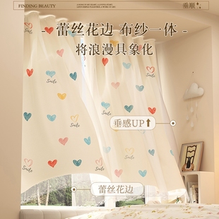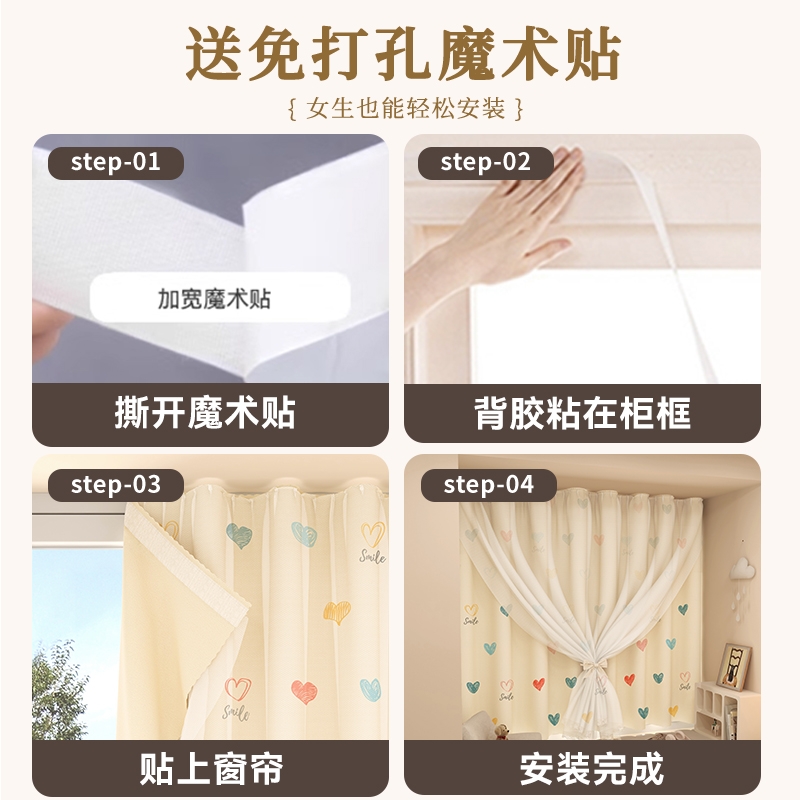 魔术贴款 窗帘免打孔遮阳卧室小窗户防晒2025飘窗遮光布全纱帘租房