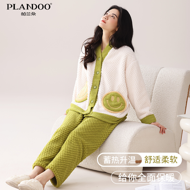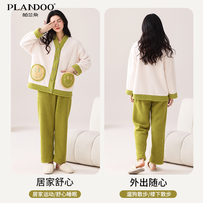 两件套可外穿简约笑脸家居服 秋冬款 帕兰朵睡衣女士舒棉绒长袖 长裤