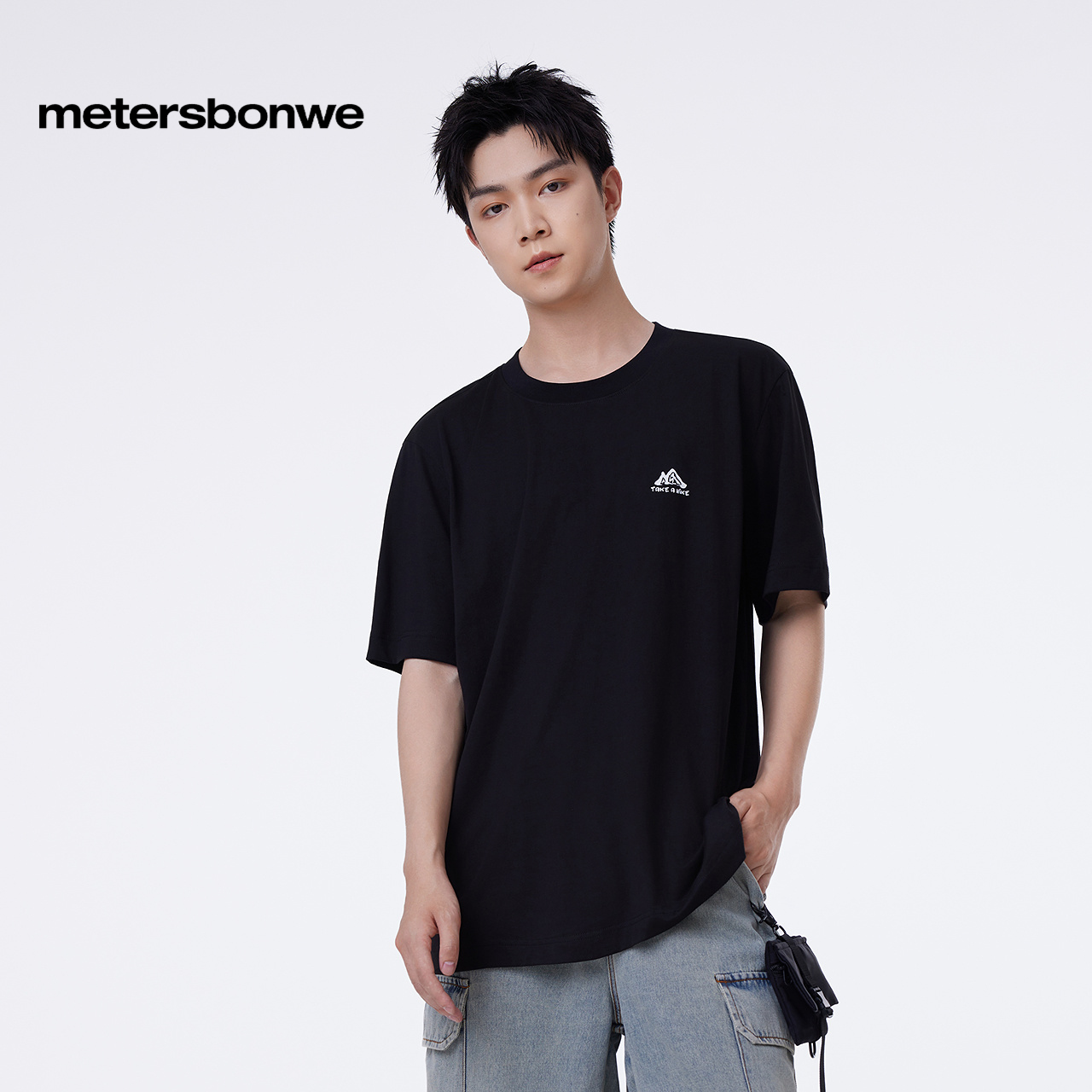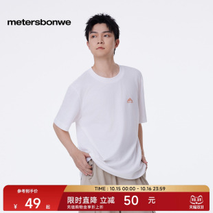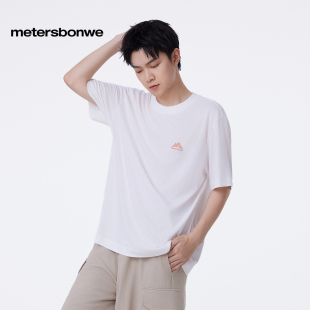 恤纯棉柔软体恤 休闲小logo印花短袖 美特斯邦威T恤男2025秋季 新款