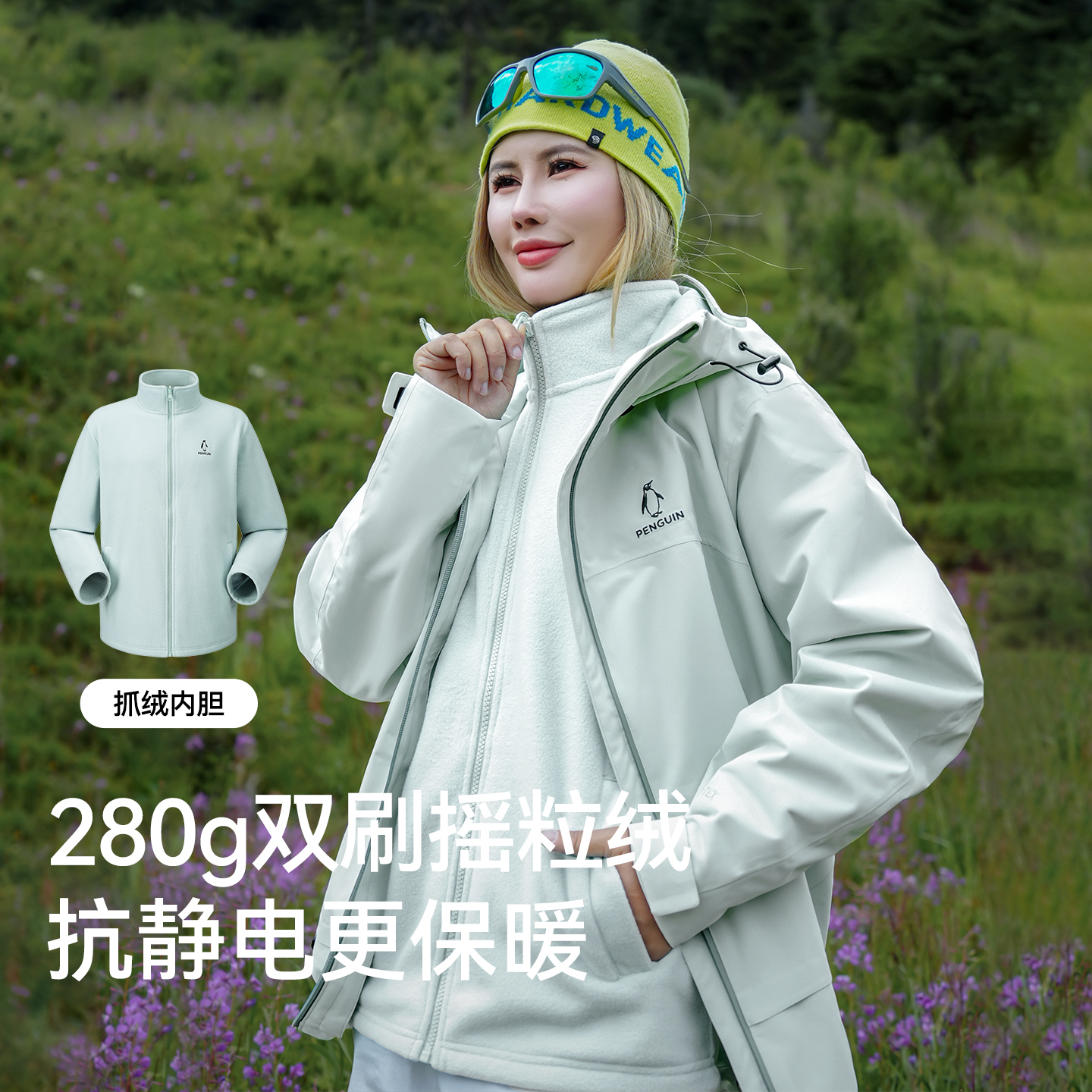户外三合一登山服男士 冬季 2025新款 稻草人羽绒内胆冲锋衣外套女款