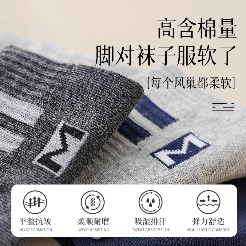 诸暨袜子男纯棉中筒袜春秋季 青少年长袜防臭吸汗短袜运动男袜商务