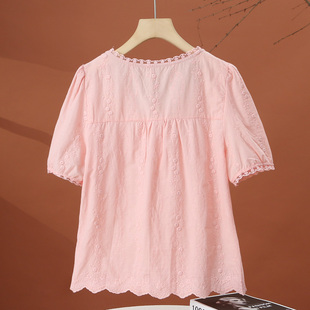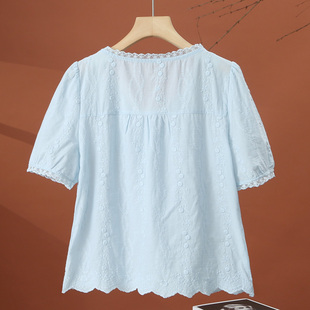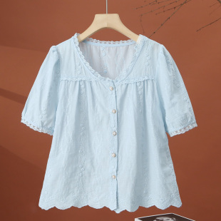 衬衫 减龄衬衣时尚 女夏季 洋气百搭小衫 女士上衣 2025年新款 蕾丝短袖