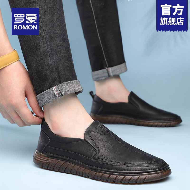 头层牛皮一脚蹬厚底商务休闲中老年爸爸男鞋 老人头皮鞋 男真皮秋季