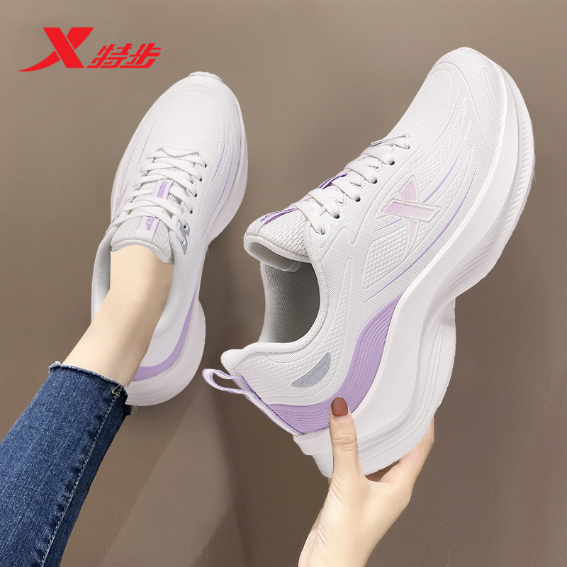 学生休闲跑鞋 特步运动鞋 旗舰店正品 皮面防水轻便跑步鞋 女2025新款