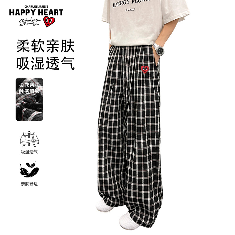 撞色格子直筒阔腿百搭长裤 男春秋季 子 休闲裤 查尔斯桃心2025新款