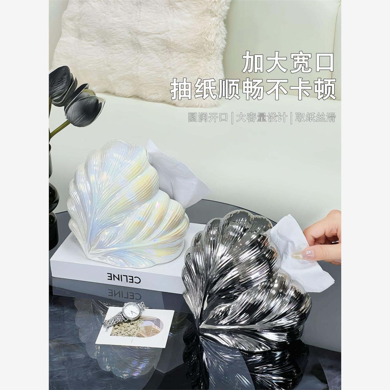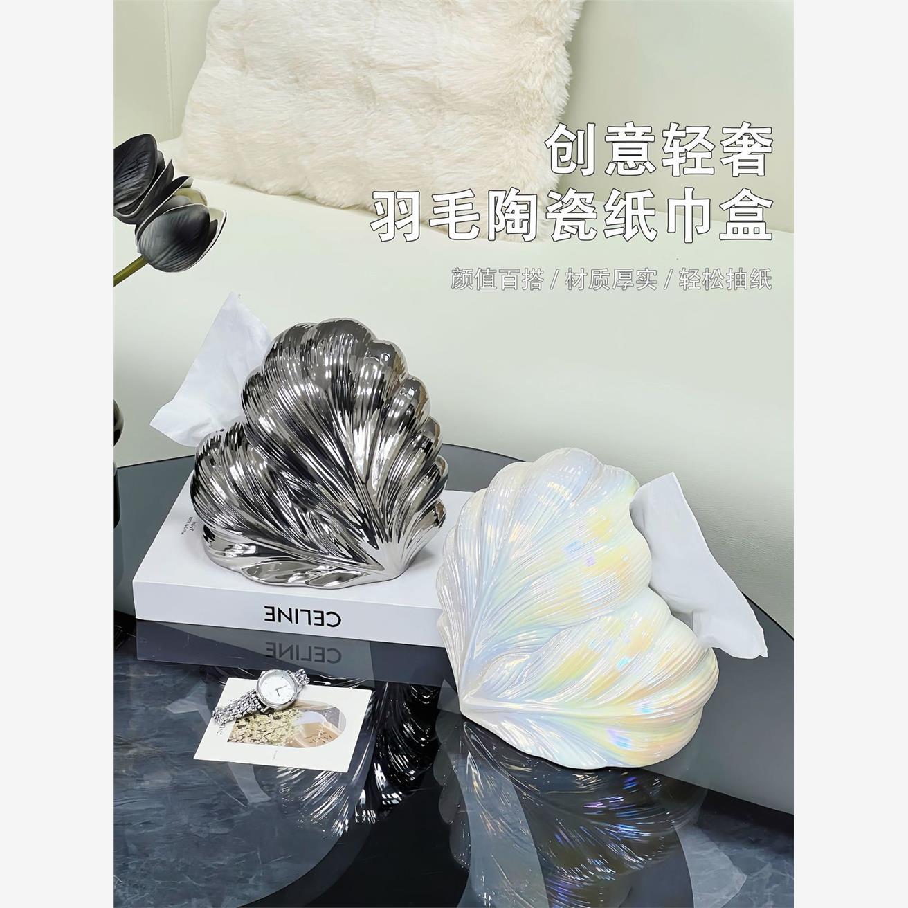 创意陶瓷纸巾盒抽纸盒餐厅卧室餐巾纸盒精致茶几居家收纳摆件质感