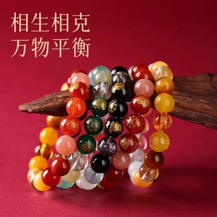 朱砂手串女男帝王砂东海水晶玛瑙翡翠玉石散珠子红手镯紫金砂手链