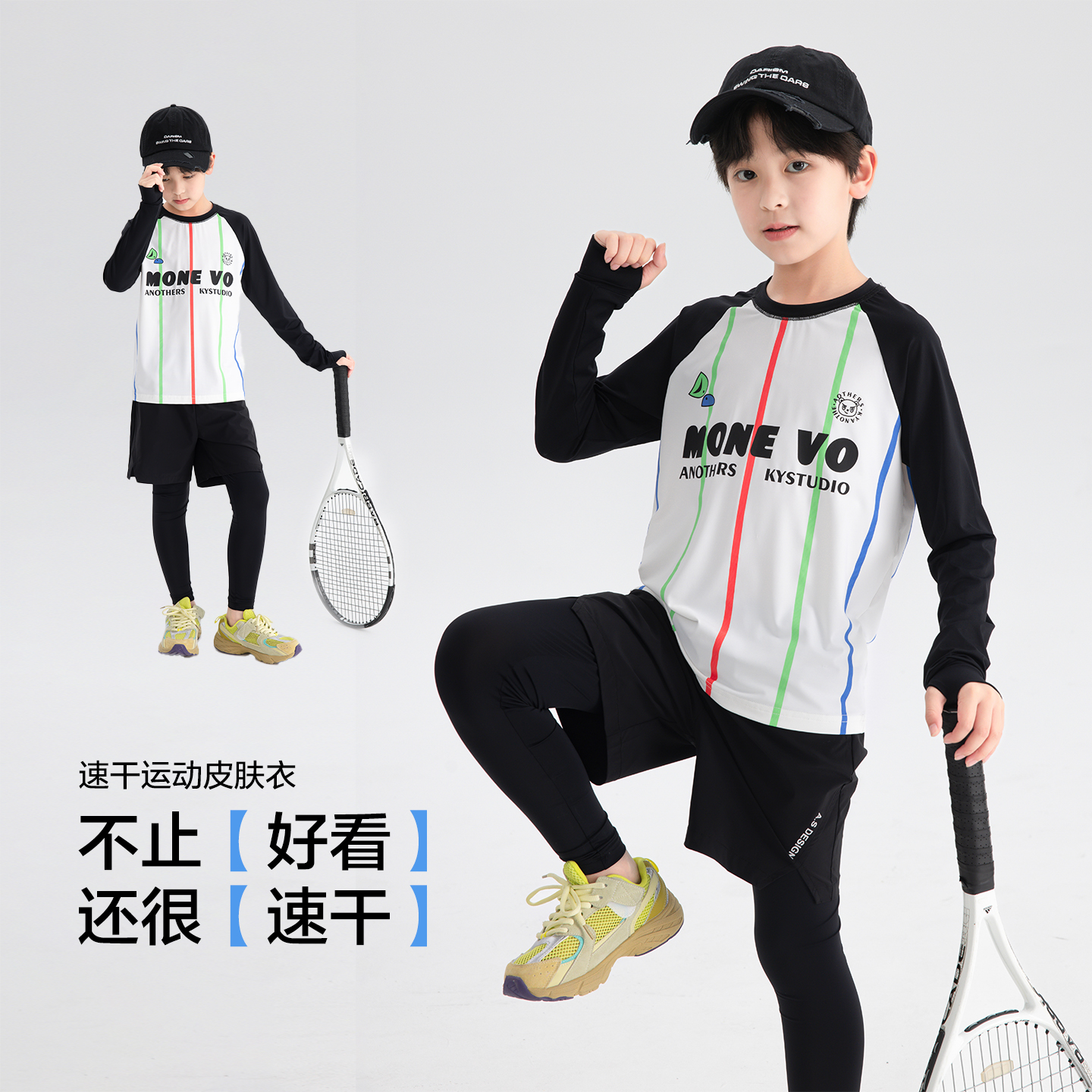 青少年儿童轻薄跑步上衣 骑行服t恤2025新款 男童秋装 运动速干长袖