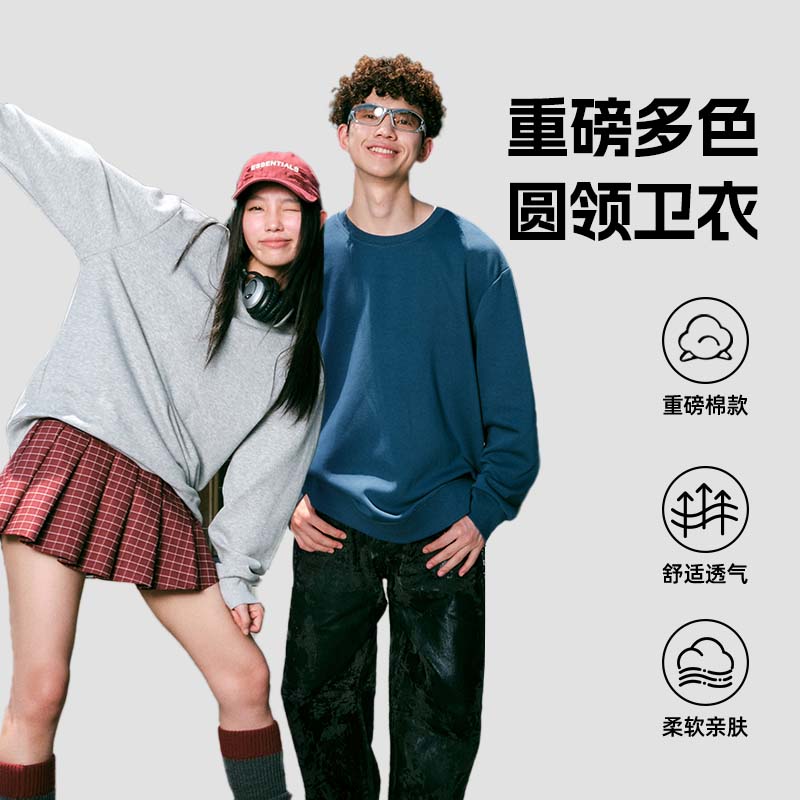 百搭潮流长袖 回力黑色卫衣男春秋款 重磅宽松圆领上衣服男女同款