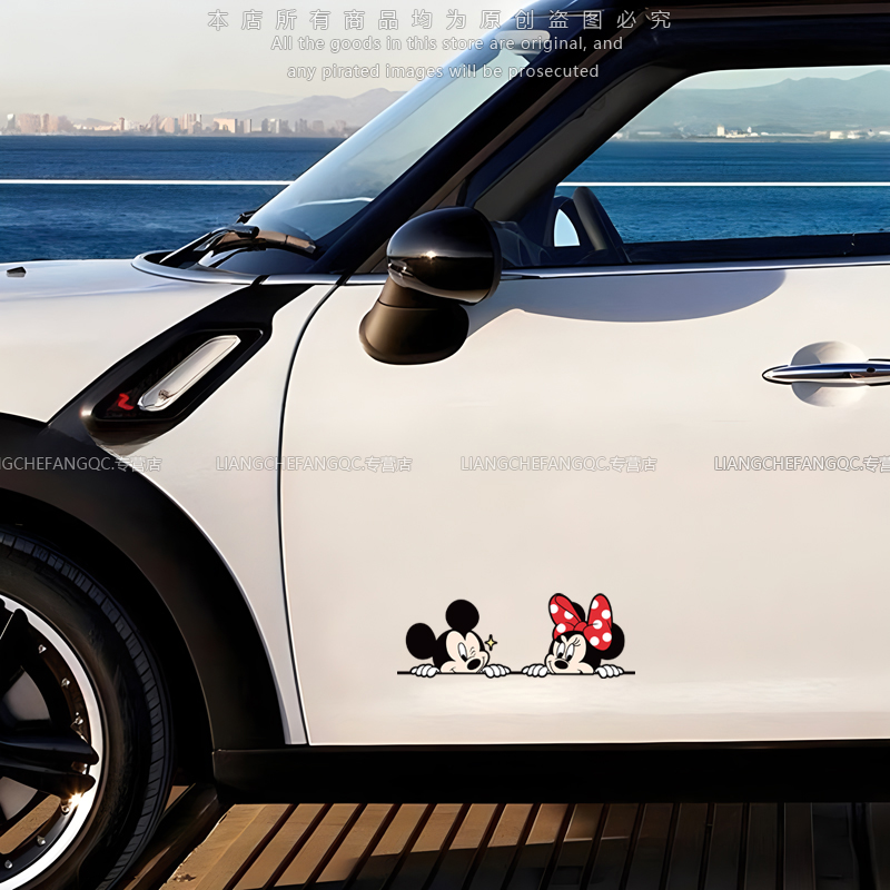 反光车贴米奇米妮创意个性 饰贴画 电动摩托车行李箱车身划痕玻璃装