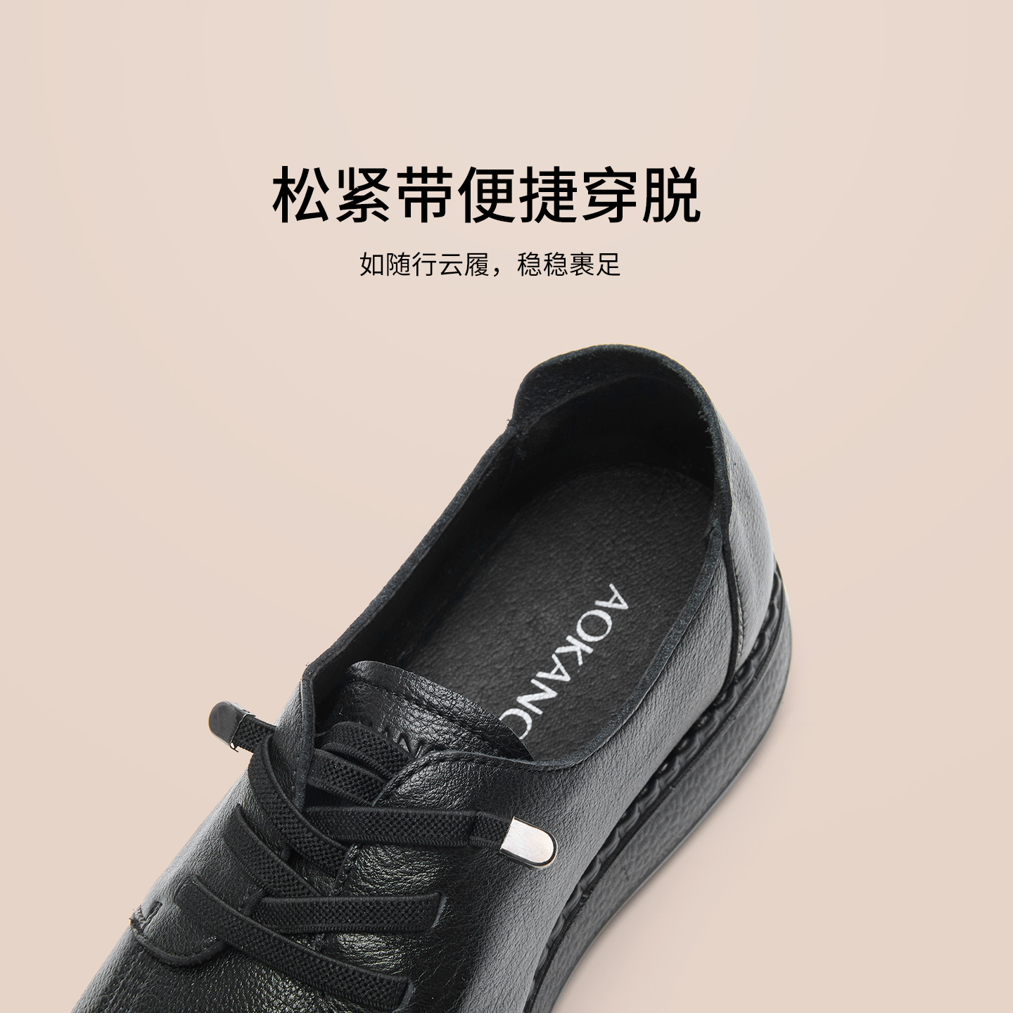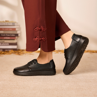 女鞋 一脚蹬免系平底鞋 2025秋季 舒软鞋 门店发货 真皮妈妈鞋 奥康