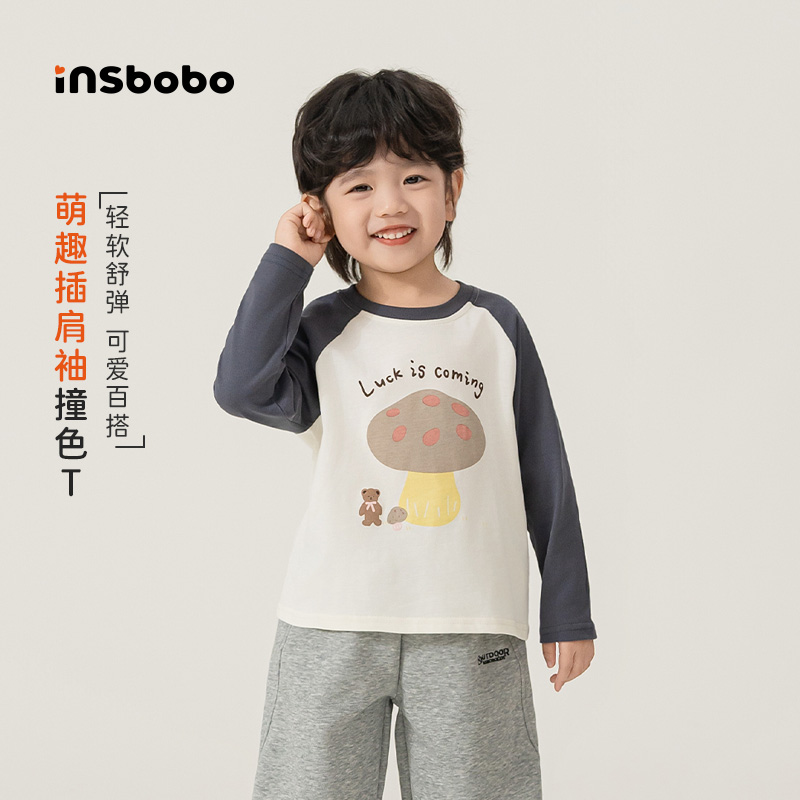 衣服春秋童装 INSbobo男童上衣秋季 宝宝插肩袖 t恤2025新款 男宝长袖