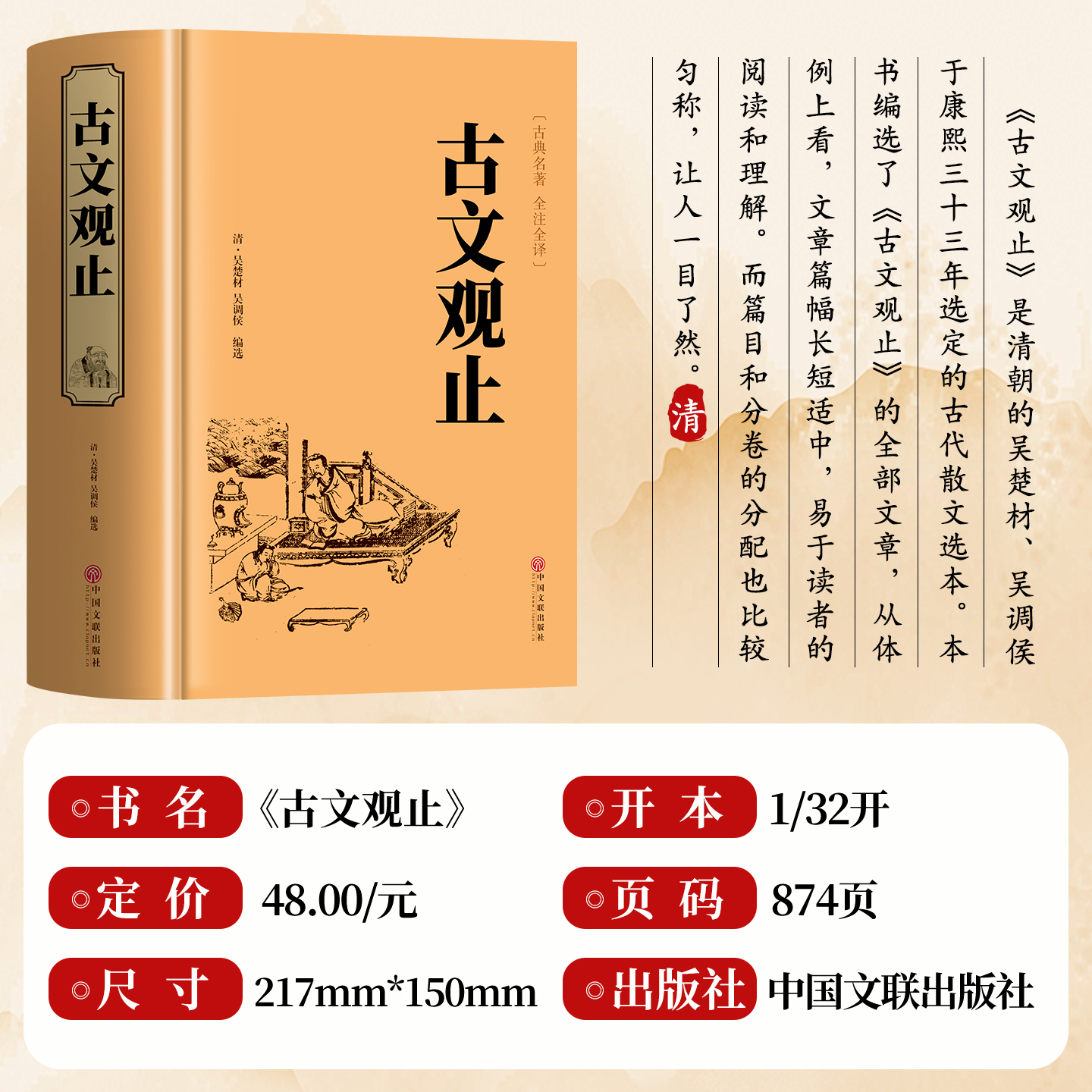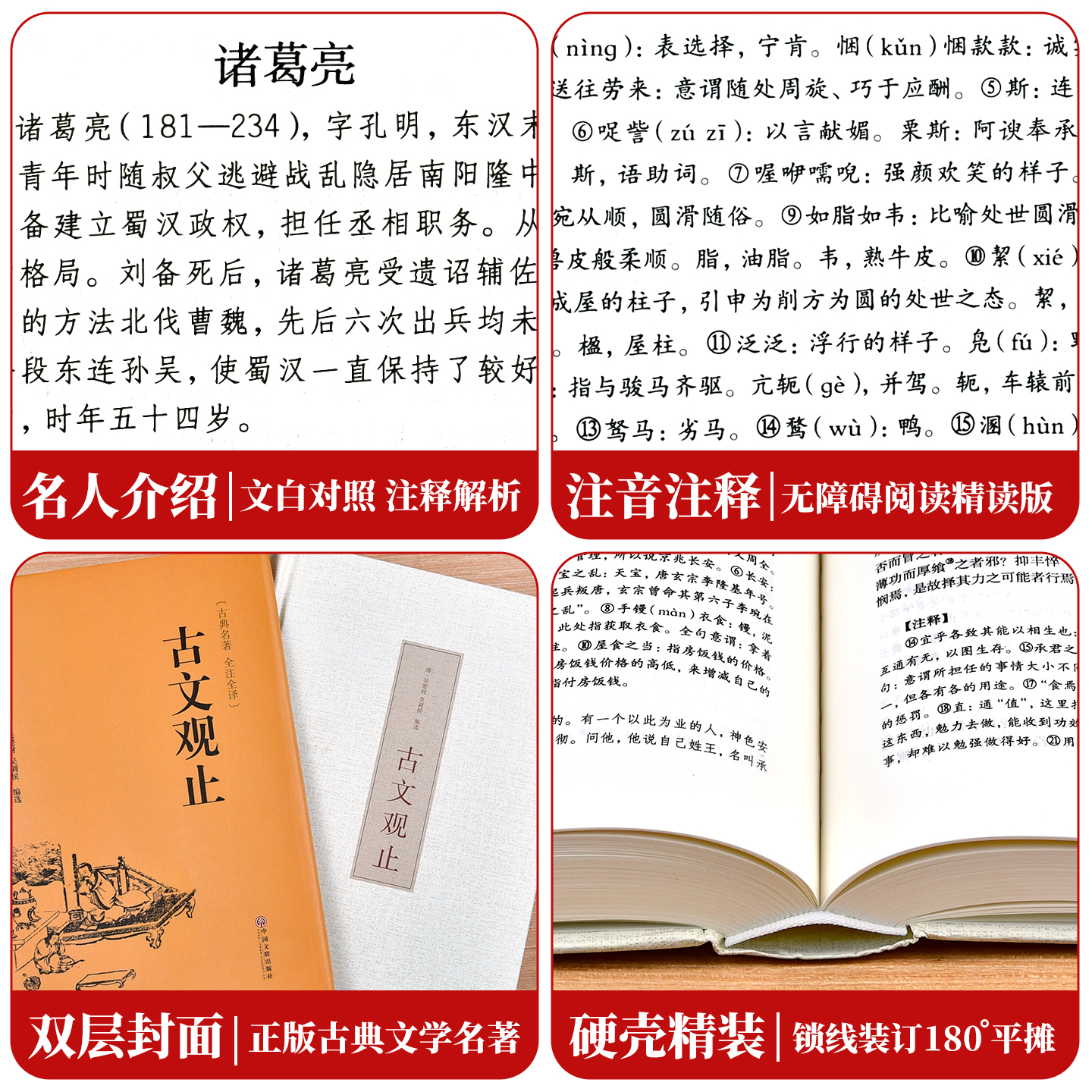 青少年译文注释全解无障碍阅读精装 正版 高中生初中生阅读古典名著 古文观止完整无删减全注全译版 中国古代著名文学书籍 现货