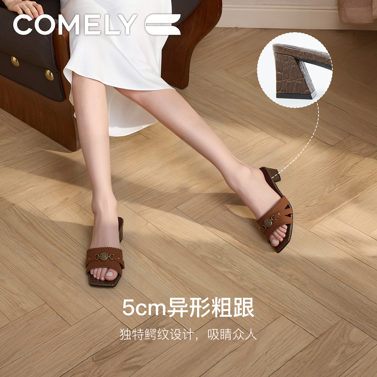 巨好看不累脚凉拖鞋 复古奶油鞋 女夏外穿2025新款 康莉羊皮高跟拖鞋