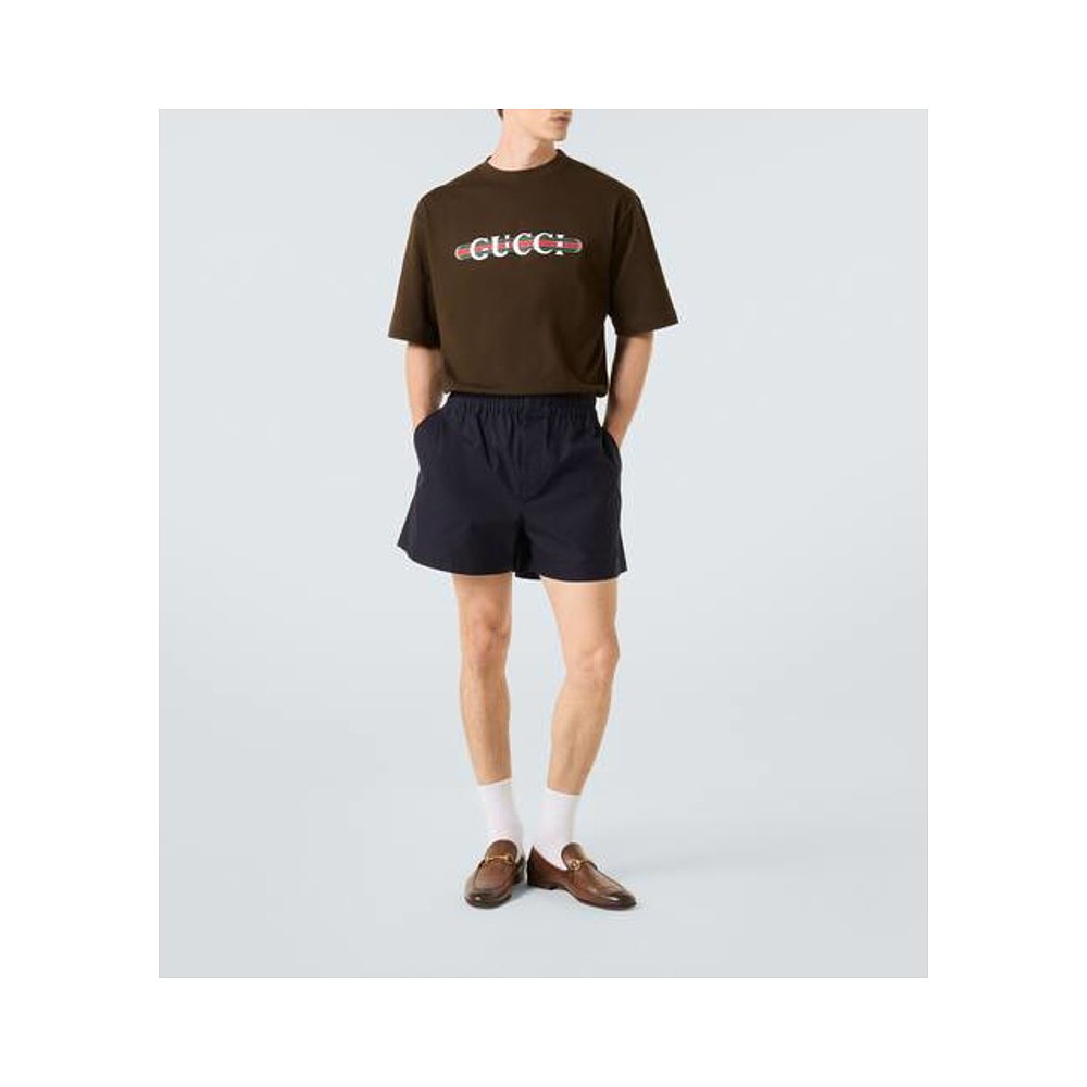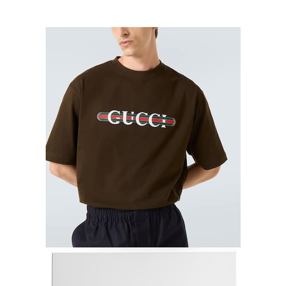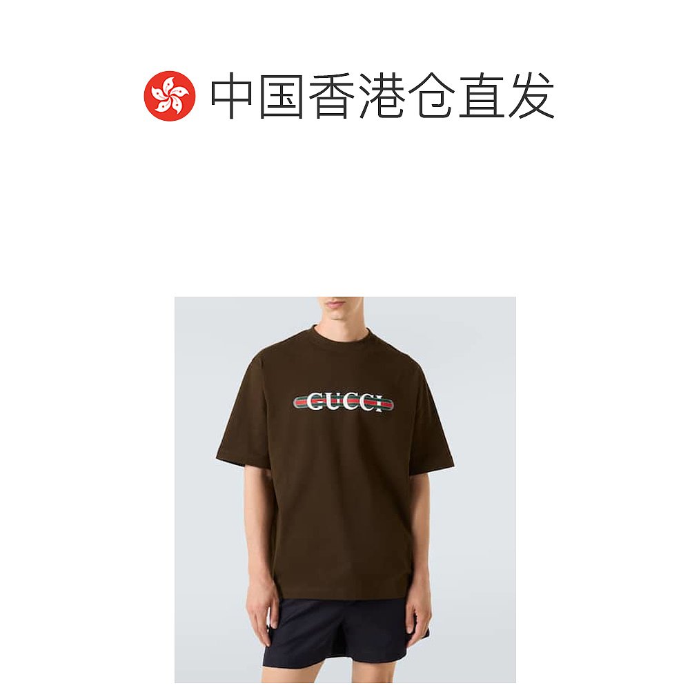 香港直邮Gucci brown棕色 古驰 徽标棉质针织T恤 舒 男士 1h可退