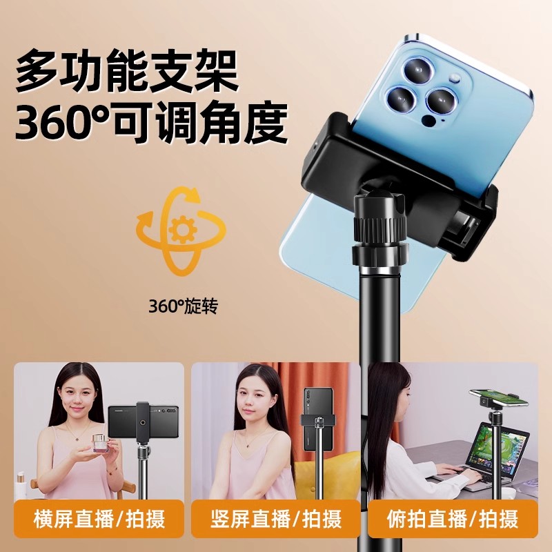 手机拍照直播支架三脚架带补光灯网红拍照专用桌面落地自拍视频拍摄通用考研复试多功能懒人伸缩三角支撑架子