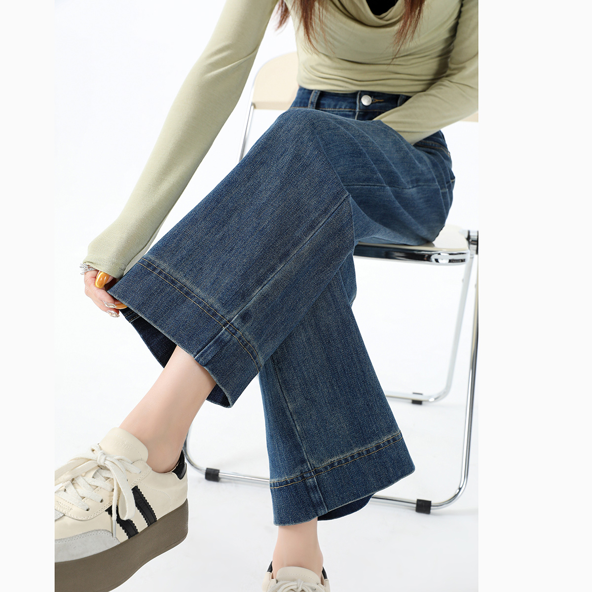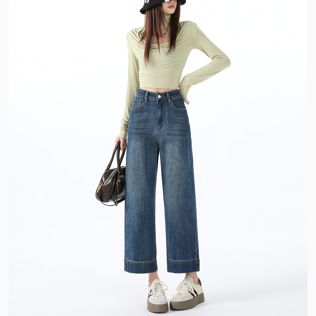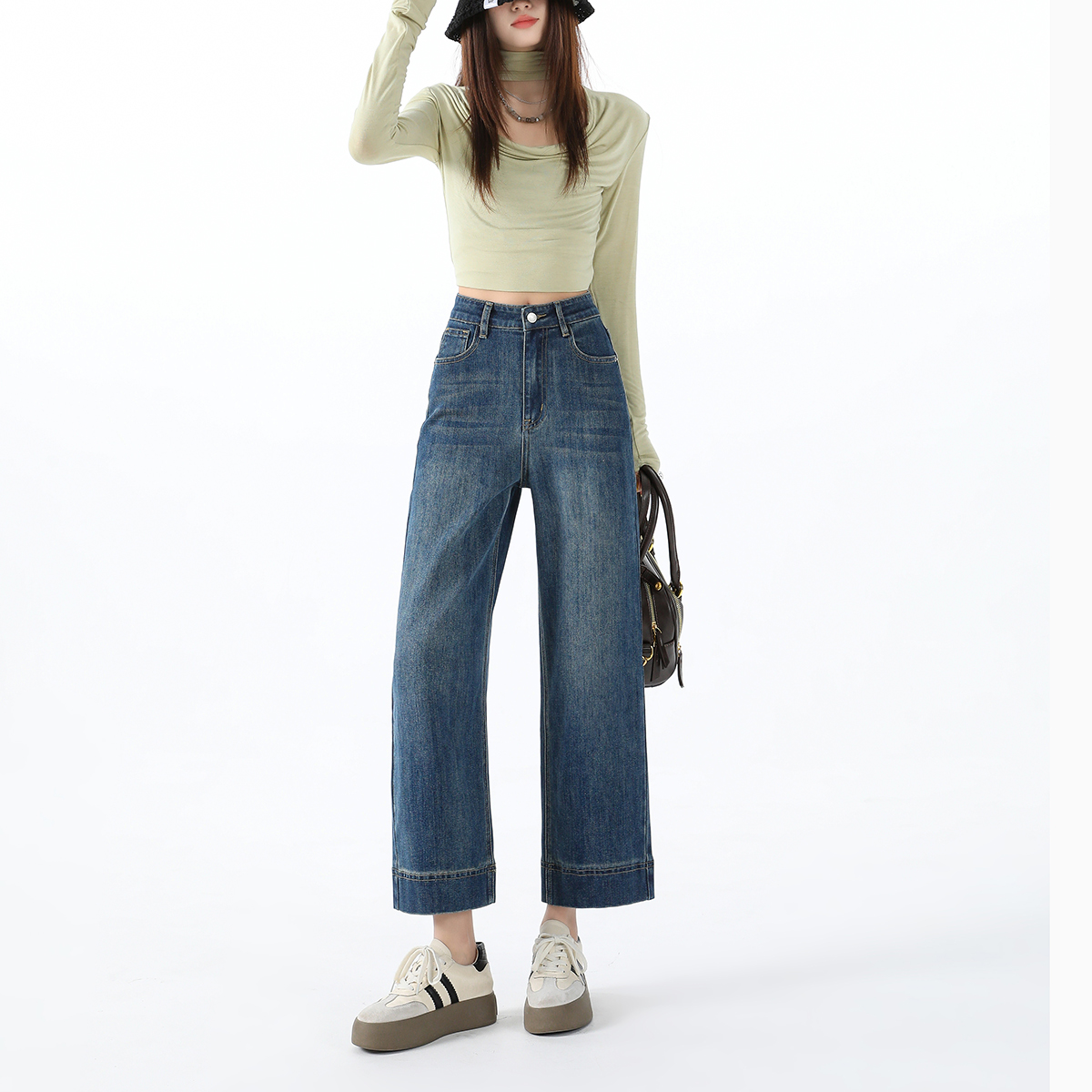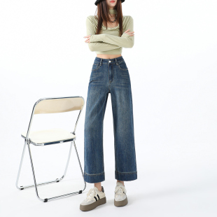 复古做旧阔腿显瘦直筒牛仔裤 新款 2025年秋季 热风女士直筒牛仔裤