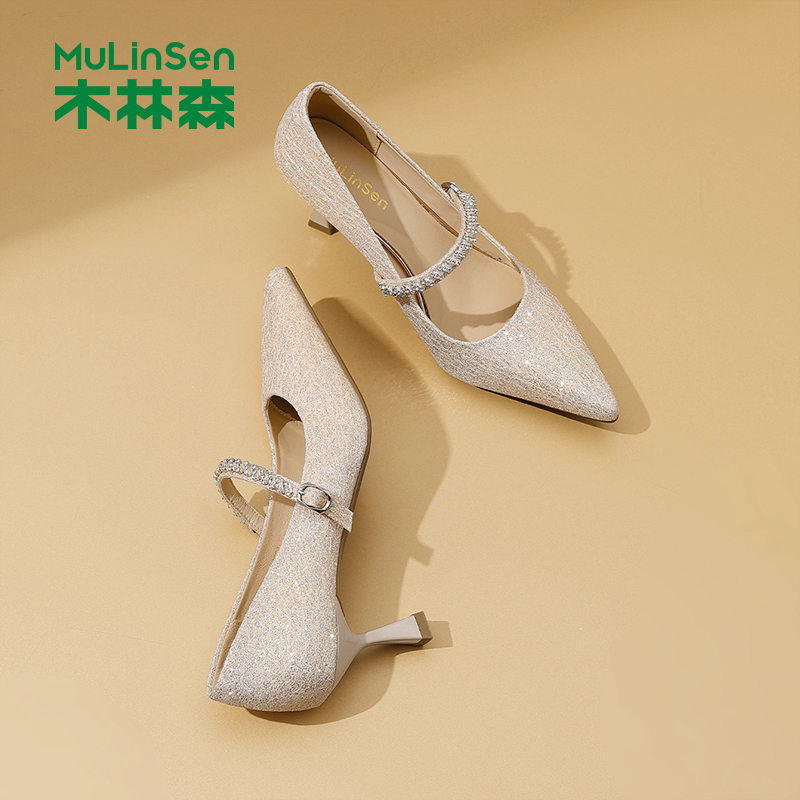 一字扣带浅口百搭玛丽珍鞋 木林森女鞋 尖头细跟高跟鞋 新款 2025秋季