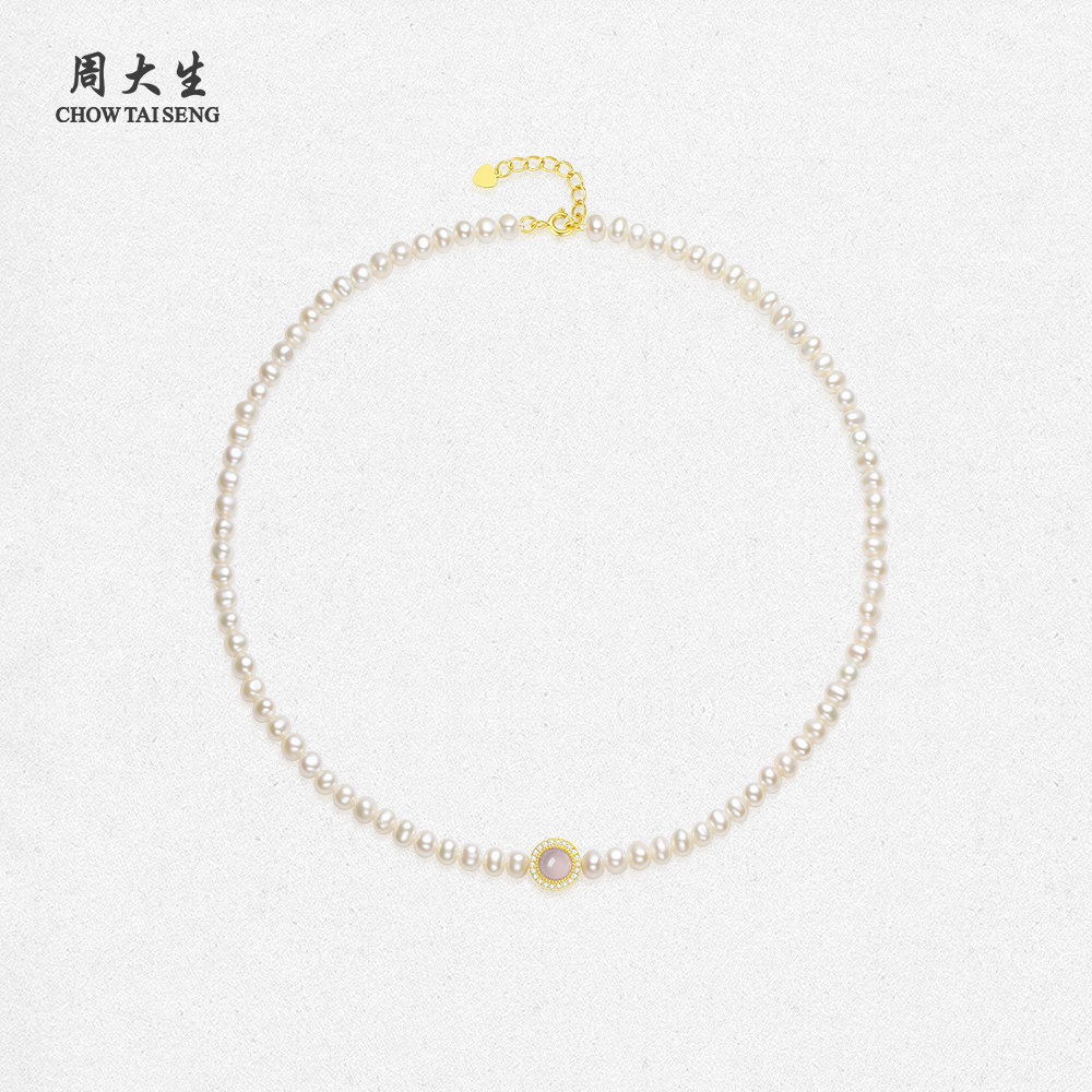 3mm小米珠施家珍珠项链女2025新款 轻奢小众爱心颈链细锁骨链 爆款