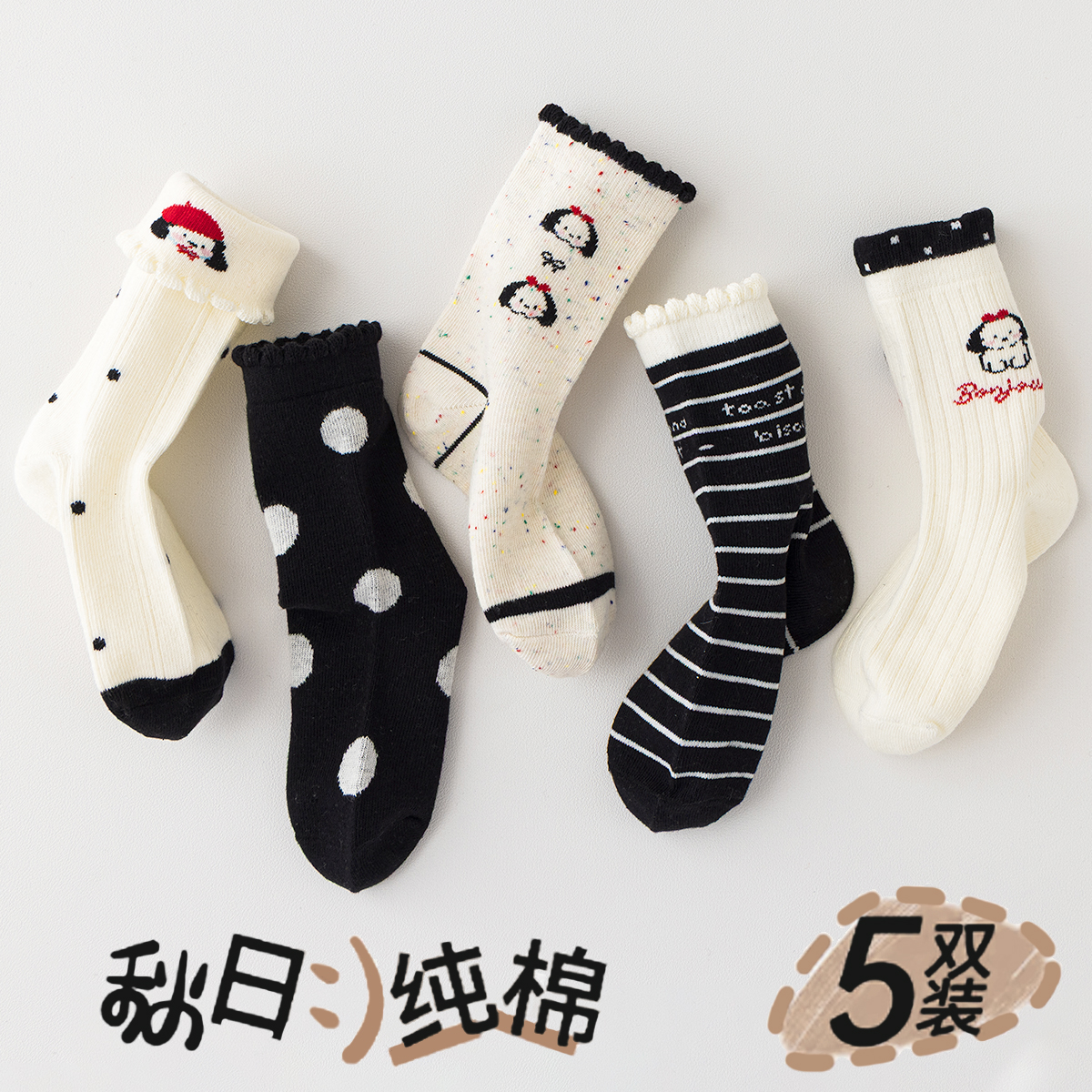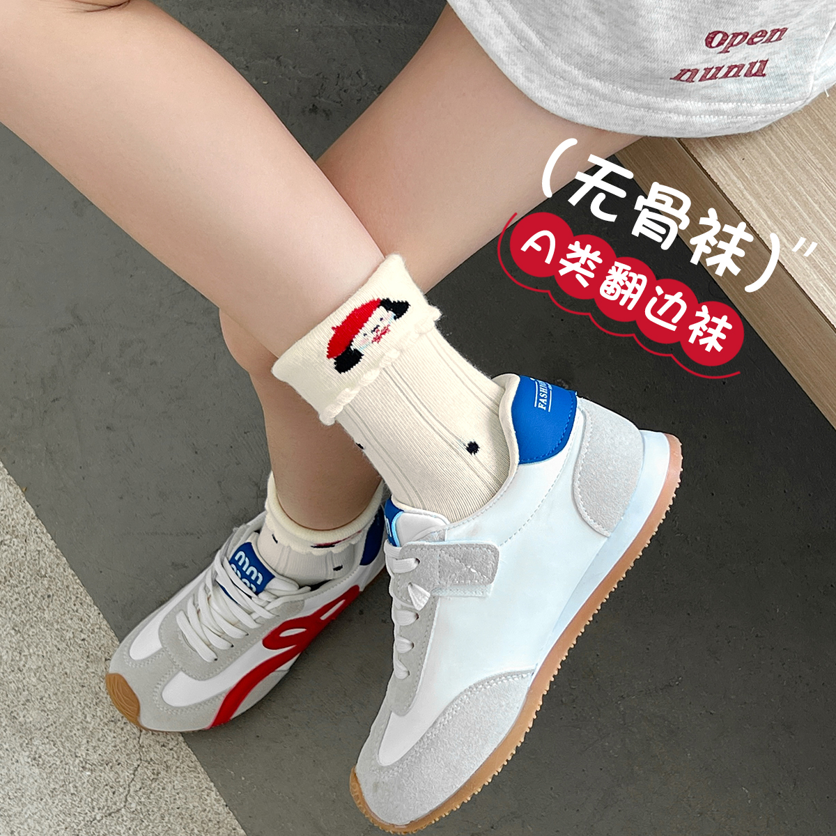2025新款 儿童袜子女童A类精梳棉100%纯棉无骨袜女孩花边中筒长袜