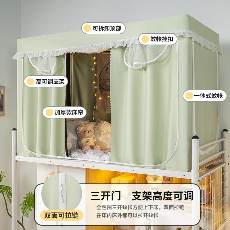 无涂层大学生宿舍床帘蚊帐一体式 床幔 上铺强遮光下铺寝室2025新款