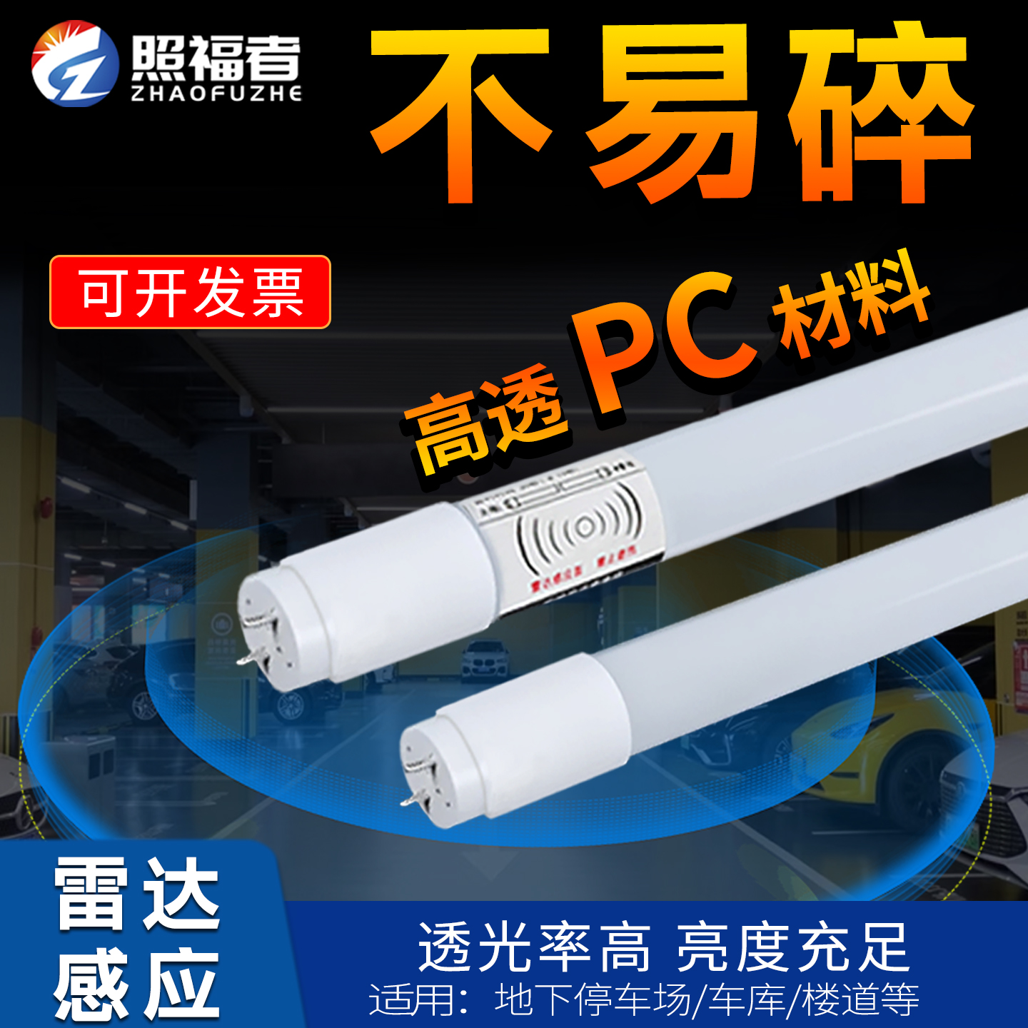 雷达感应灯管ledT8人体红外智能车库停车场声控楼道1.2米日光灯管