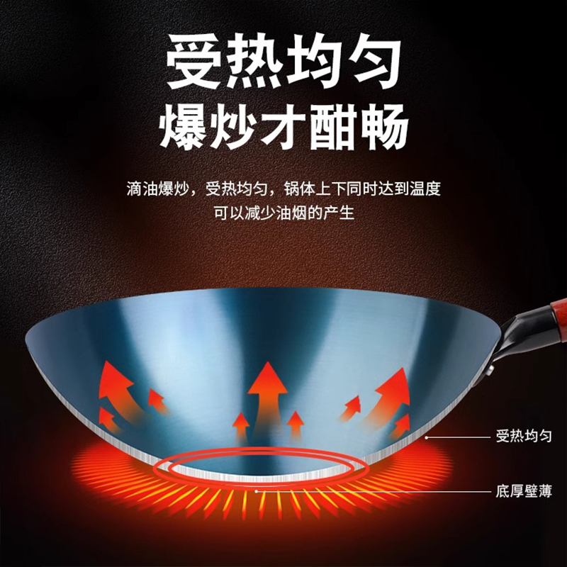 中康精铁炒锅铁锅深氮化防锈极铁家用无涂层炒锅电磁炉燃气灶通用