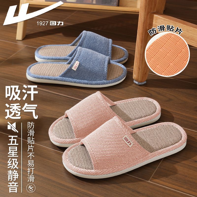通用情侣款 男防滑室内四季 高级感静音软底夏 亚麻拖鞋 回力2025新款