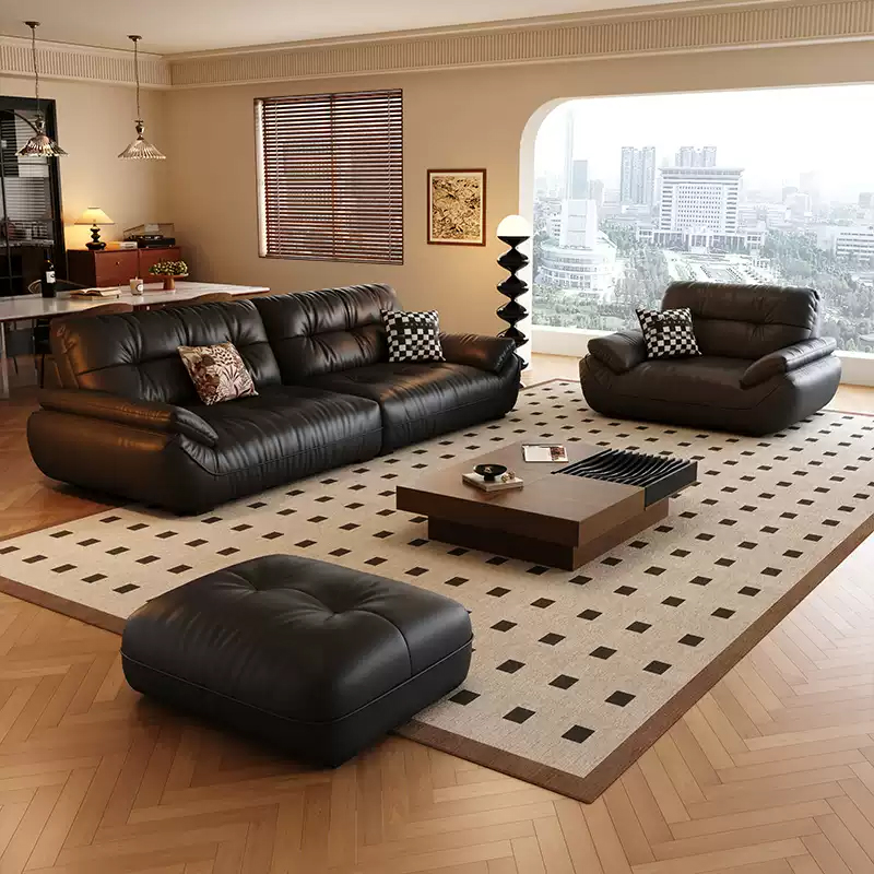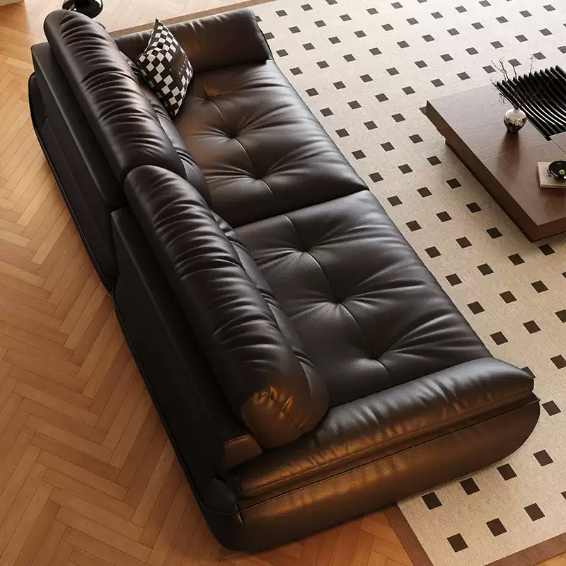 意式 极简轻奢简约现代客厅大小户型直排帆船云朵高档黑色真皮沙发