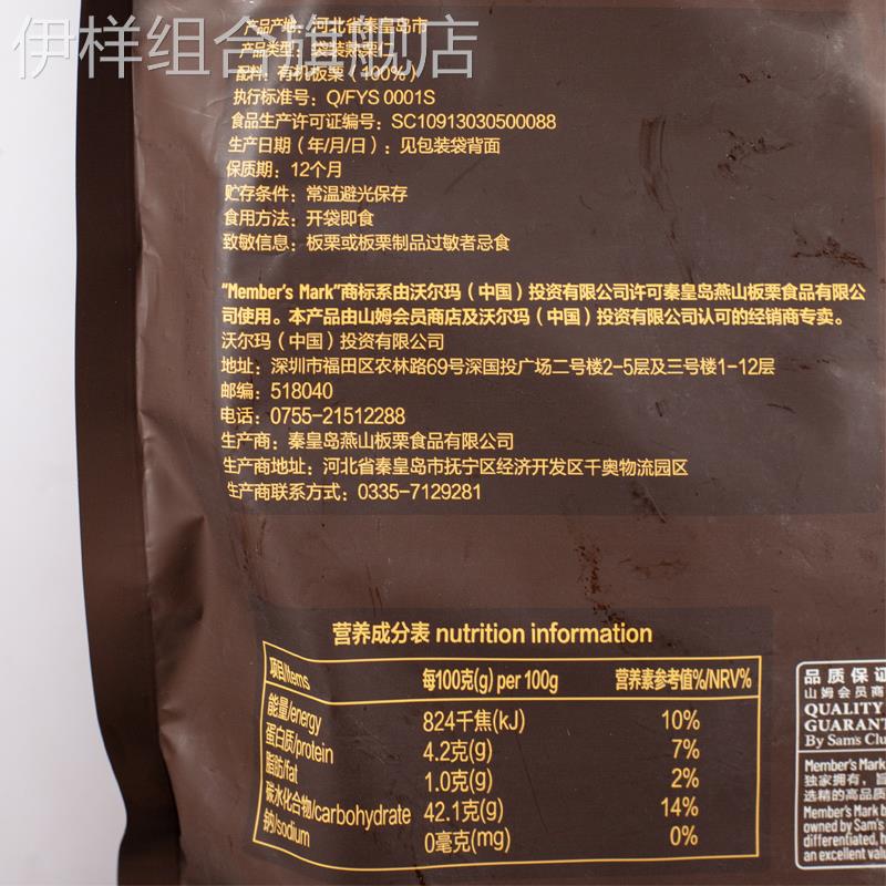 山姆有机板栗仁1kg坚果休闲办公室孕妇甘栗仁零食会员超市代购