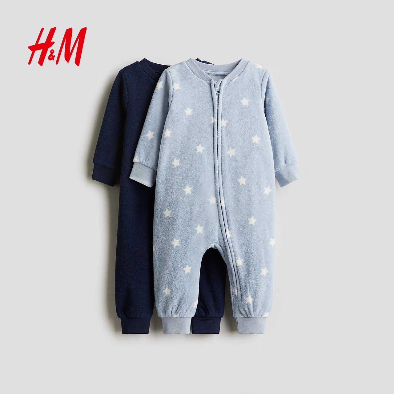 拉链长袖 HM童装 新款 2025秋季 连体睡衣1177804 男婴女婴家居服2件装