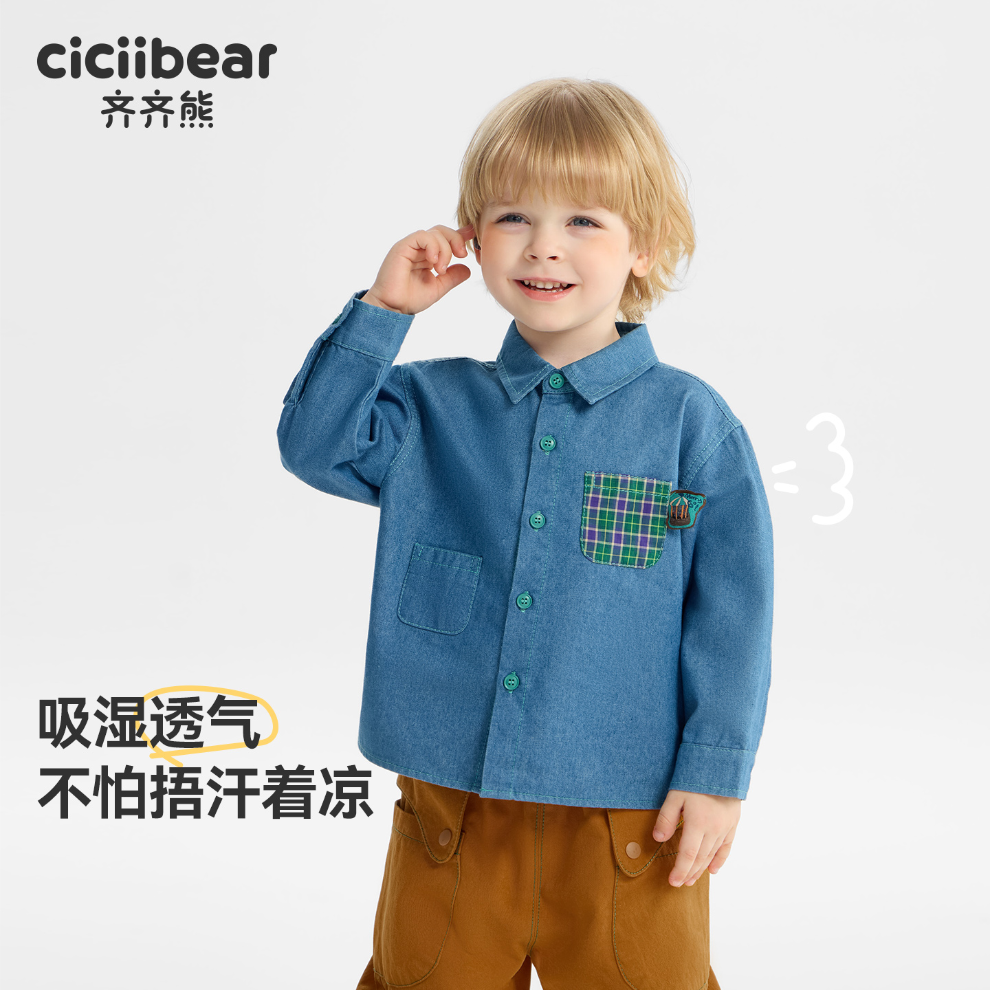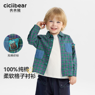 百搭秋款 儿童格子上衣2025新款 男童牛仔外套春秋款 齐齐熊宝宝衬衫