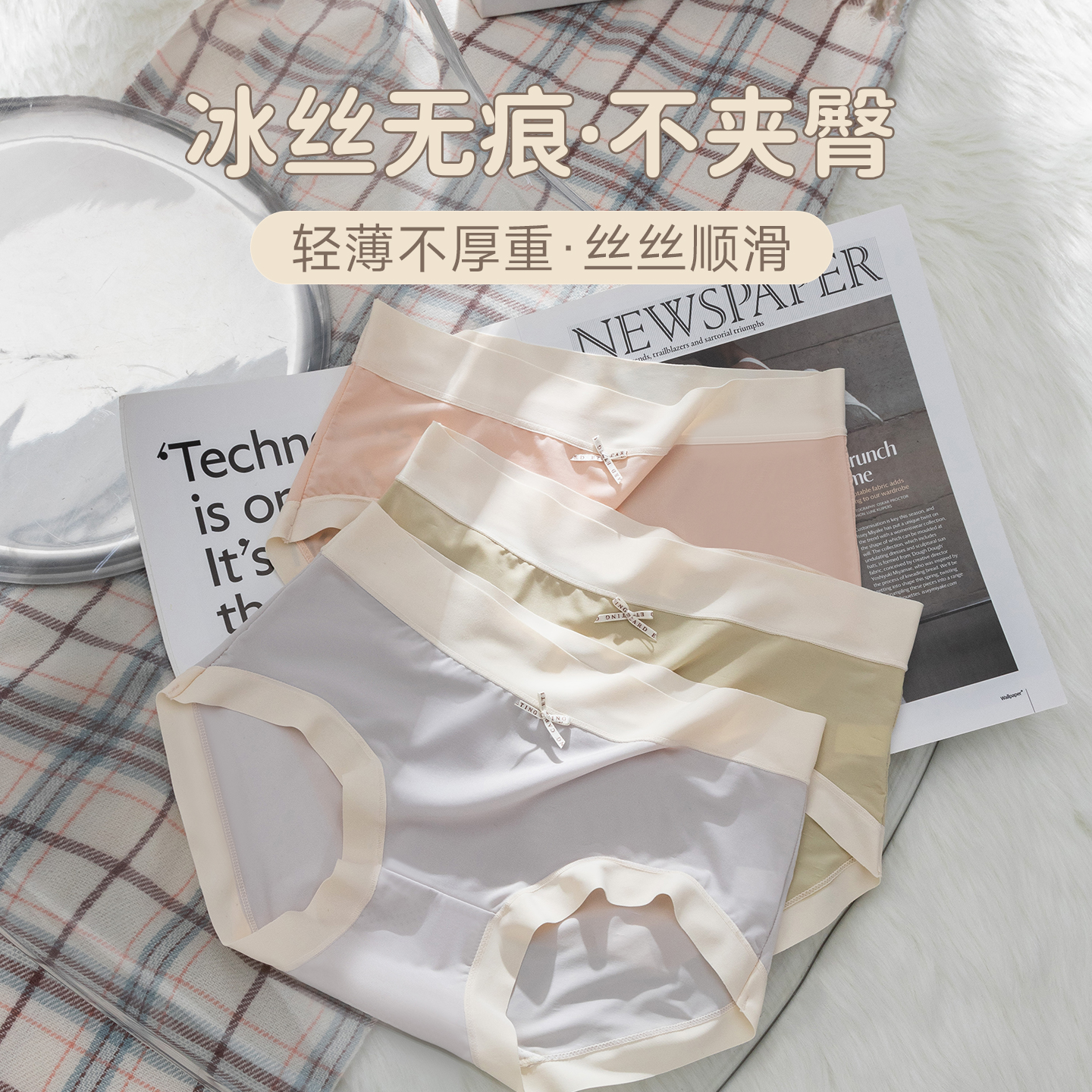 裸感中腰少女生柔软三角裤 7A级抑菌桑蚕丝裆2025新款 纯棉女士内裤