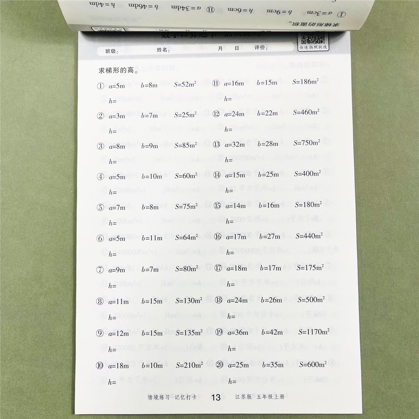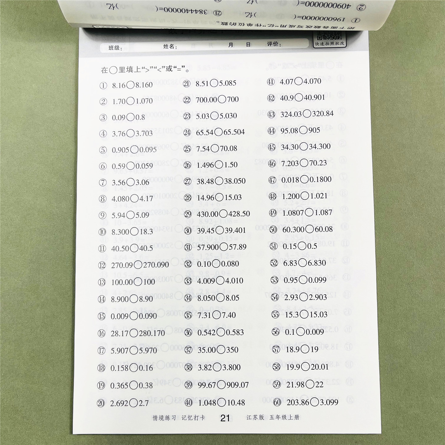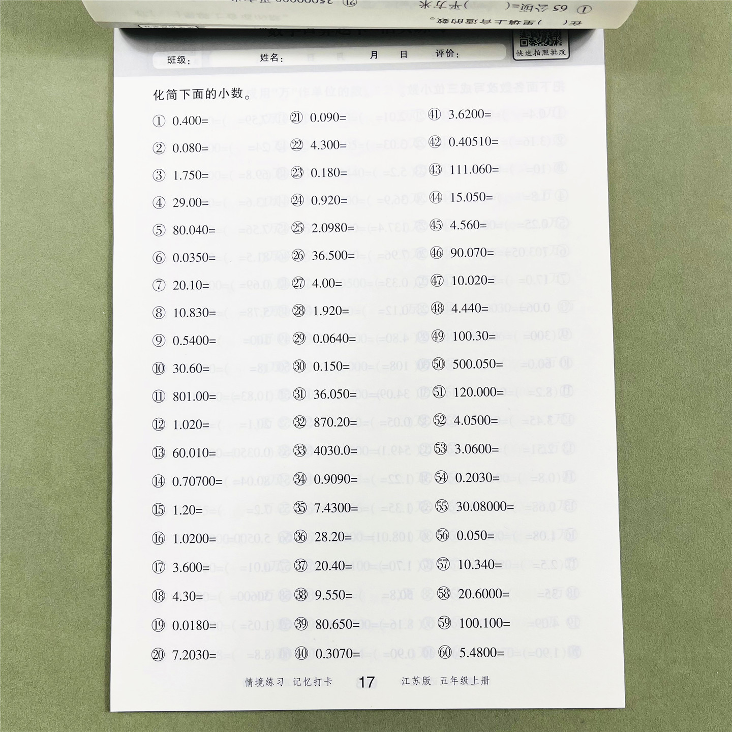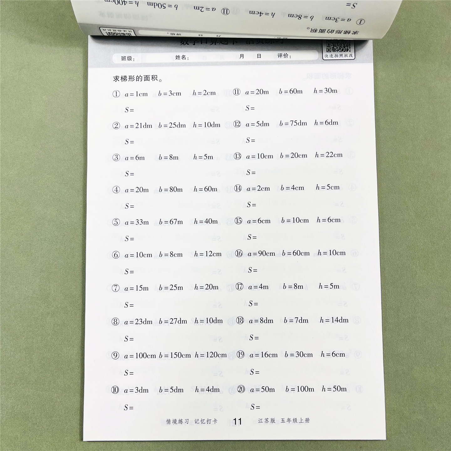 苏教版 面积口算天天练同步练习册 五年级上册数学口算题卡活页练习册小学数学练习题计算题专项强化训练小数加减法乘法除法多边形