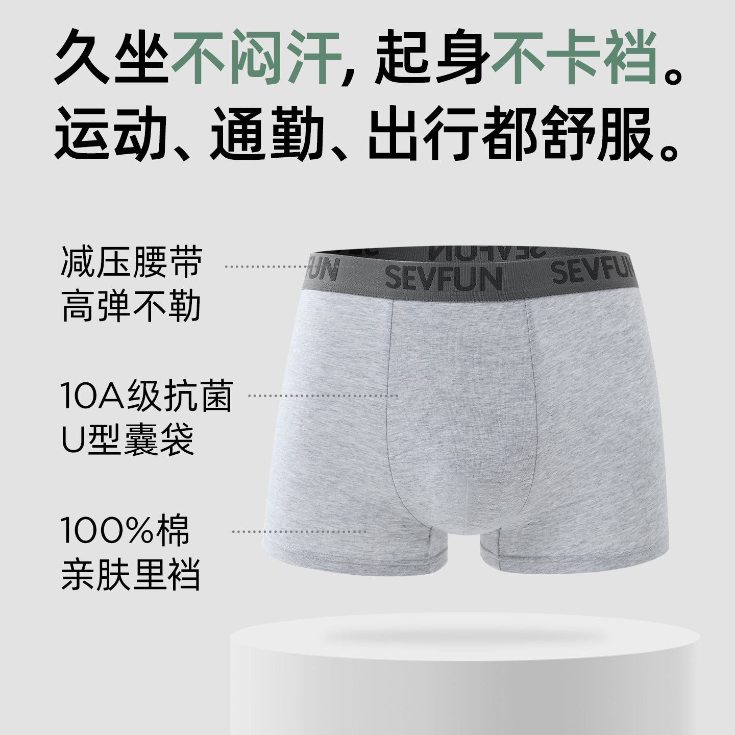 全棉抗菌裆平角短裤 七色纺纯棉内裤 运动四角裤 2025年秋大码 头 男士