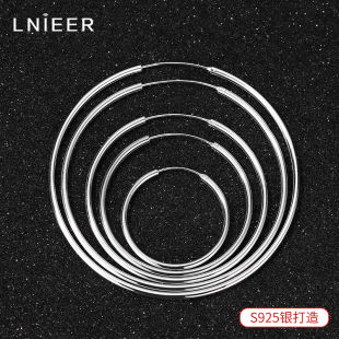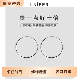 耳圈耳饰 爆款 999纯银针大圆圈素圈耳环女赵露思同款 耳夹2025新款