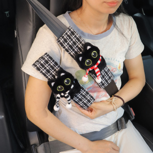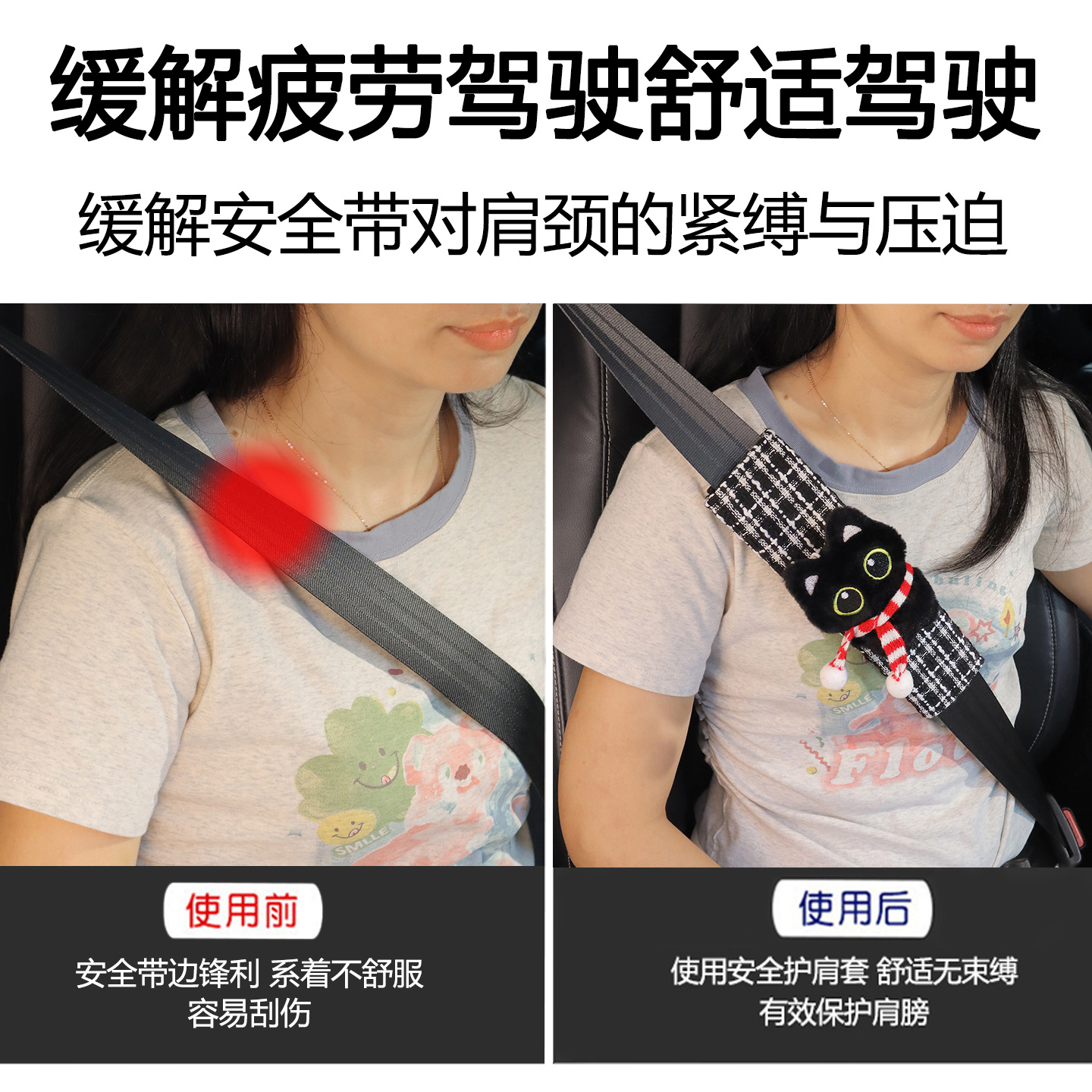 汽车安全带毛绒黑猫护肩套防勒车载装 通用高级感可爱内饰女 饰四季