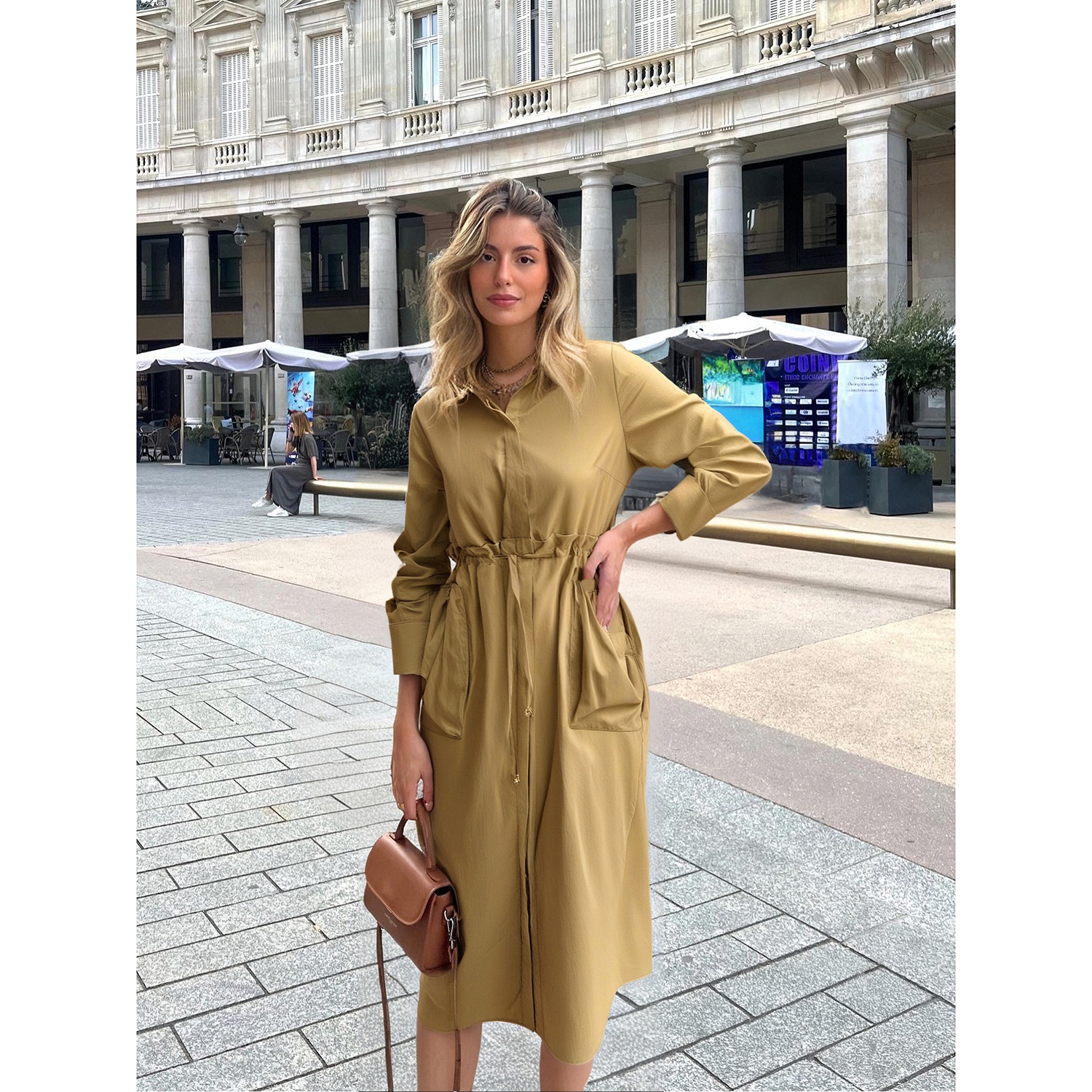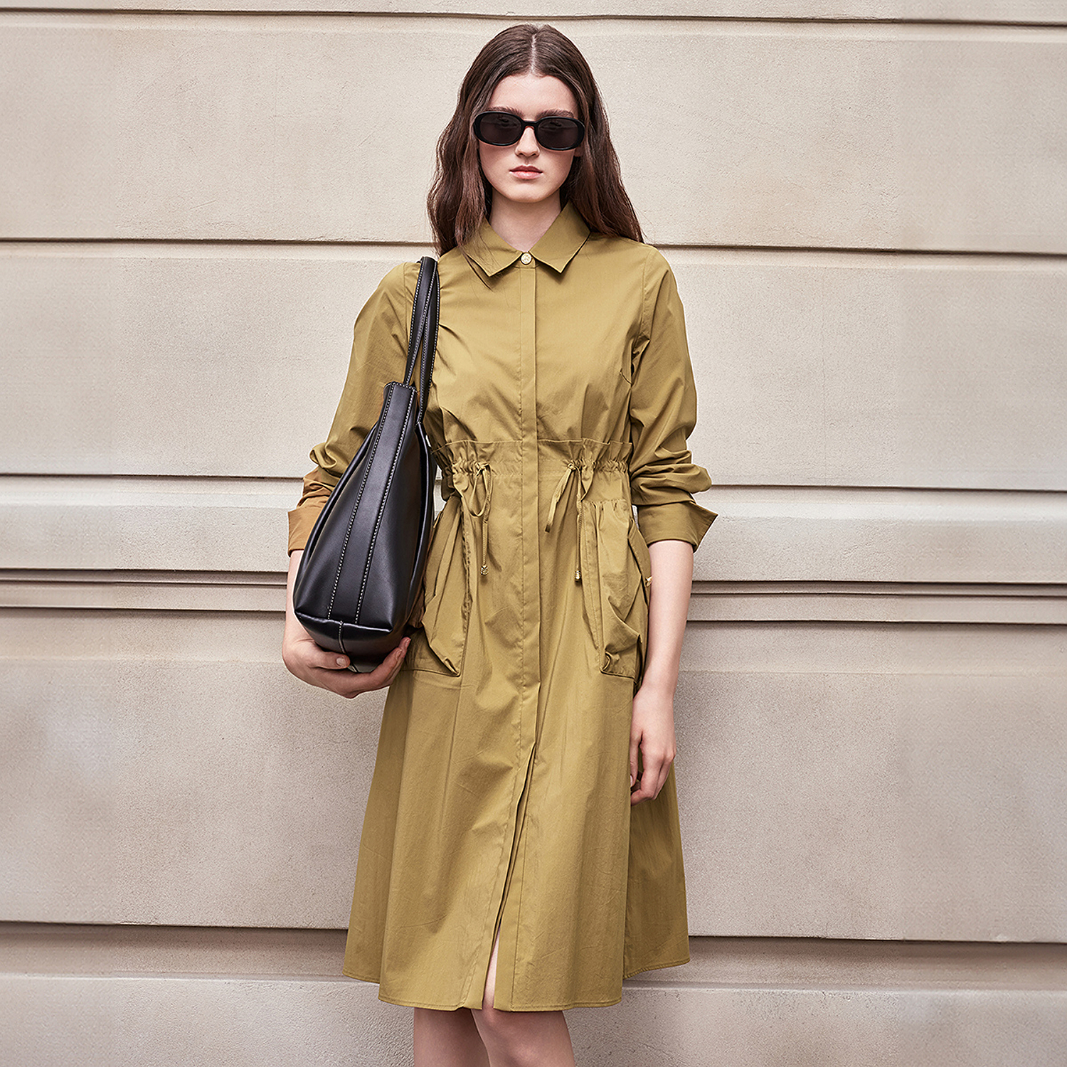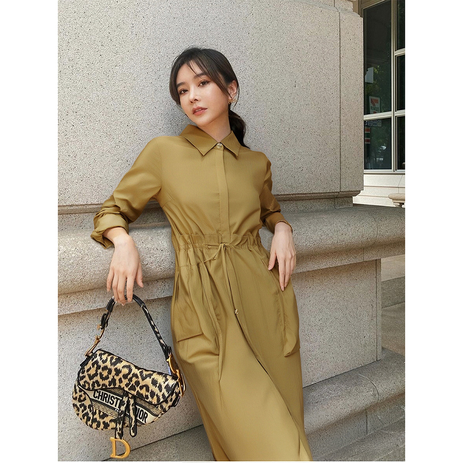 配腰带 NAERSI娜尔思V领连衣裙门筒扣子立体剪裁修身 显瘦25秋款