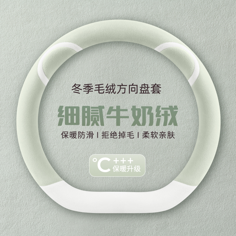 冬季 汽车方向盘短毛绒保暖可爱卡通把套高级感轻奢男女车内饰品