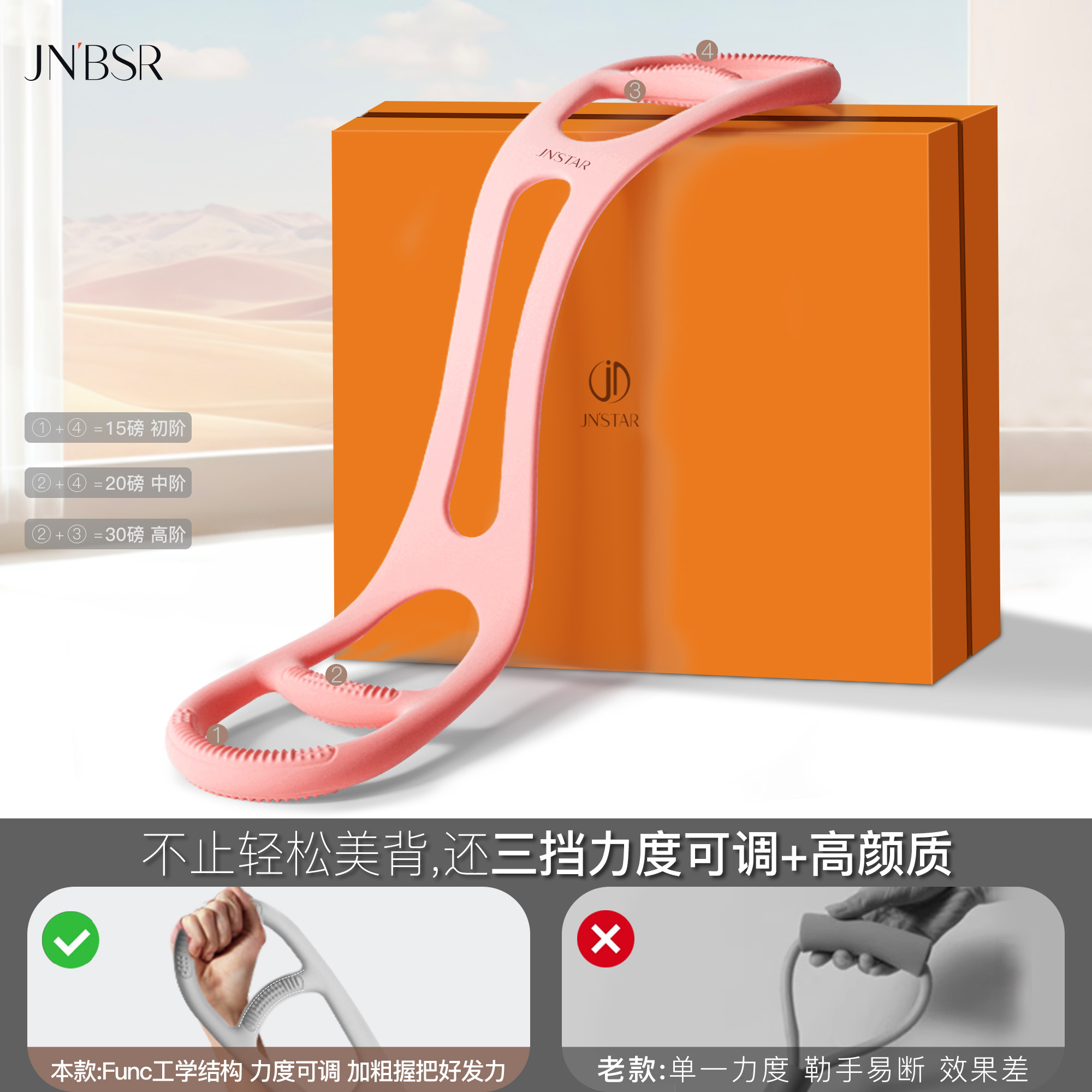 JN拉力绳拉力带拉力器女开背开肩美背拉伸练背弹力带瘦肩薄背神器
