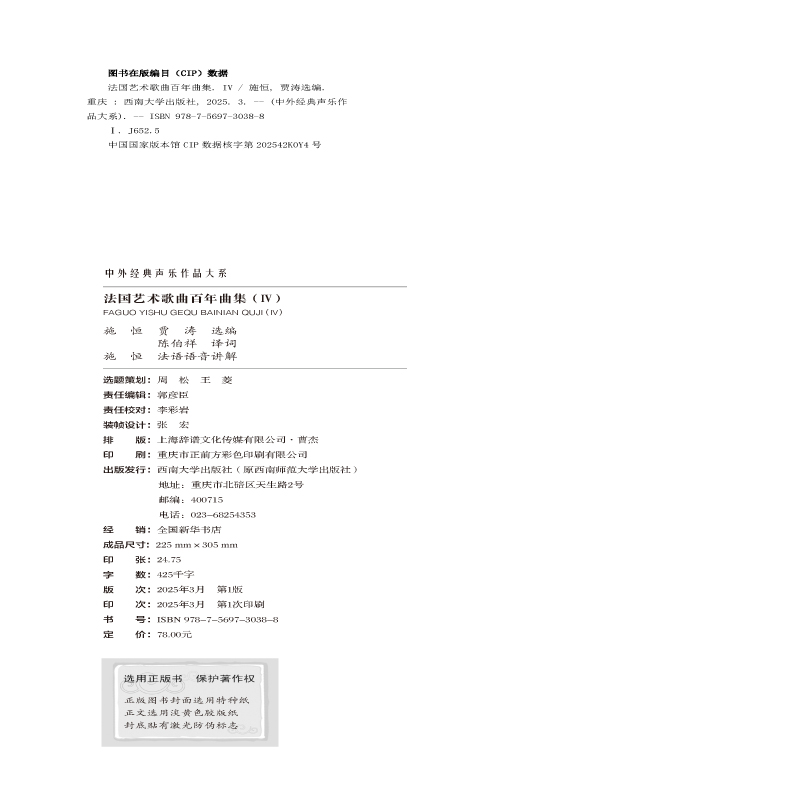 上海音乐学院规划教材 社 扫码 范唱音频 中外经典 朗读 Ⅳ 聆听歌词 西南大学出版 正版 声乐作品大系 艺术歌曲百年曲集