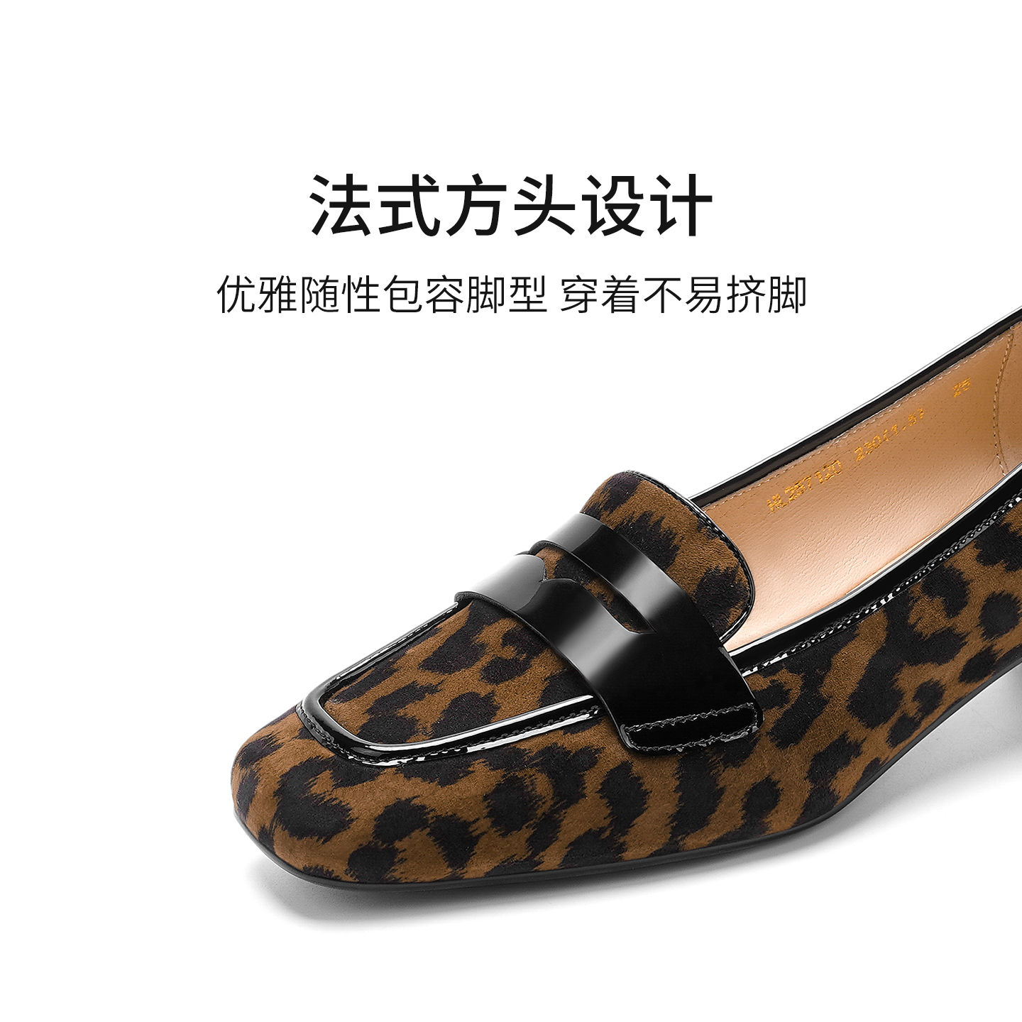 瓢鞋 方扣红色单鞋 百思图25秋新款 粗跟浅口女平底婚鞋 丝绒玫瑰